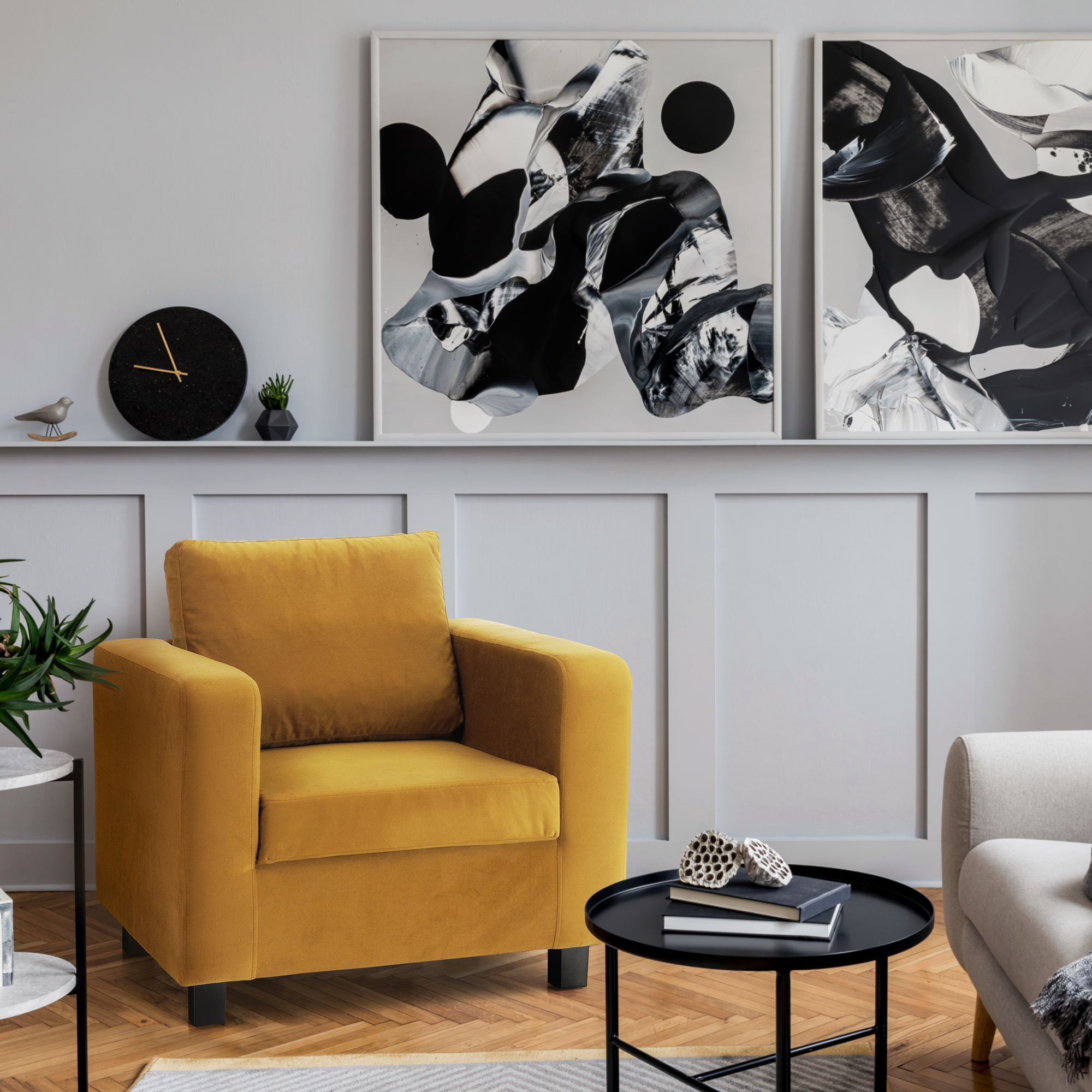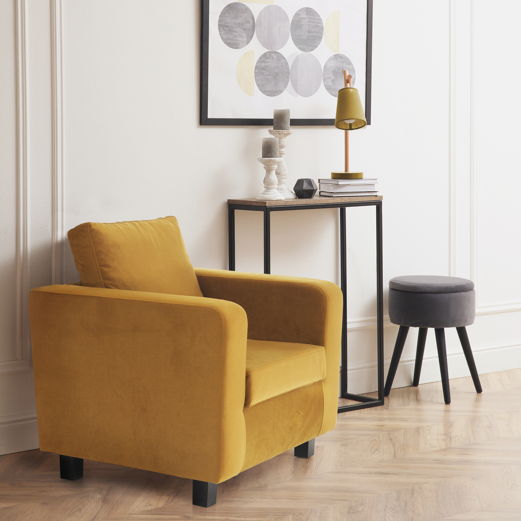 Křeslo, hořčicová látka Itaka, LUANA