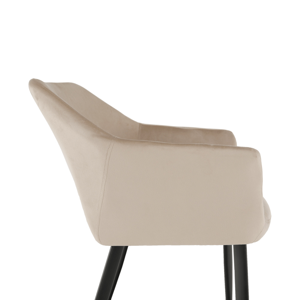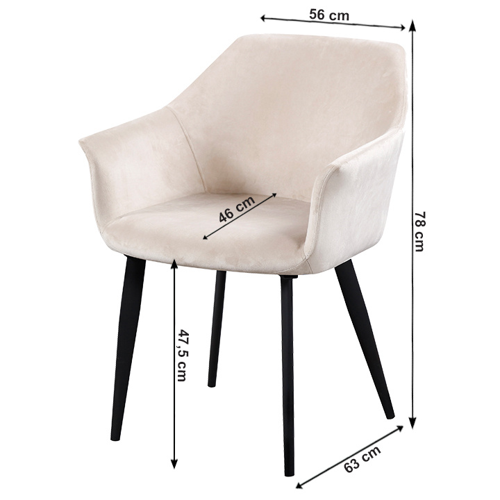 Materiál čalounění: Velvet látka Oděruodolnost textilie podle testu Martindale: 85 000 oděrů Barva: hnědá Materiál nohy: kov Barva: černá Rozměry (ŠxHxV): 66x66x83 cm Výška sedu : 48 cm Hloubka sedu: 43,5 cm Šířka sedu: 42 cm Výška zádové opěrky: 40 cm Šířka zádové opěrky: 52 cm Výška od zeme po opierku na ruky: 72cm Maximální nosnost: 10