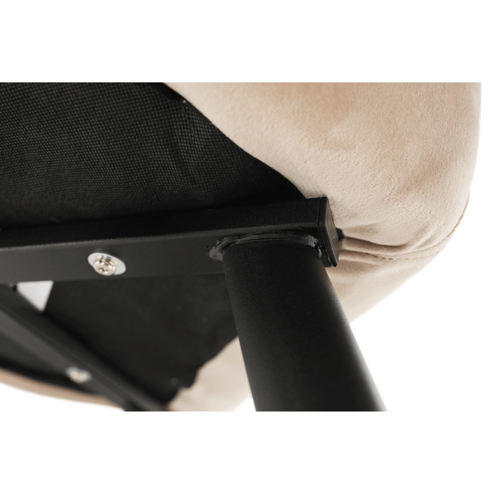 Designové křeslo ODOVEL Materiál: látka / kov Oděruodolnost textilie podle testu Martindale: 80 000 oděrek Barva: béžová / černá Rozměry (ŠxHxV): 56x63x82 cm Výška sedu: 49 cm Hloubka sedu: 46 cm Nosnost: 90 kg Dodávané v demontu.