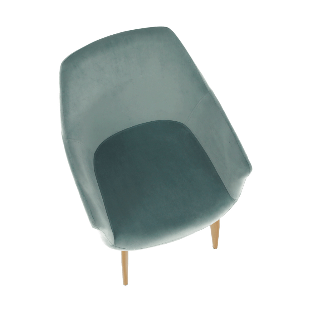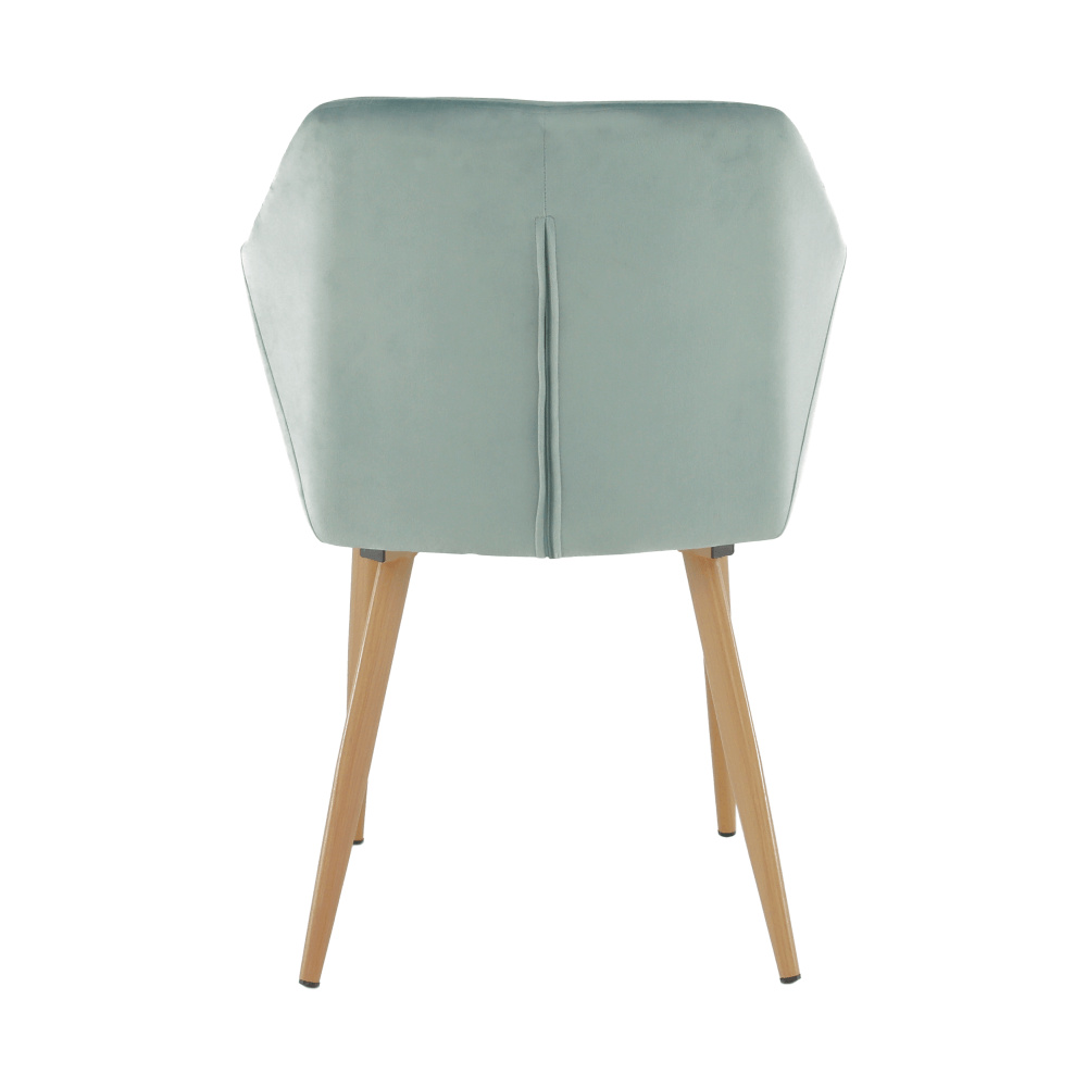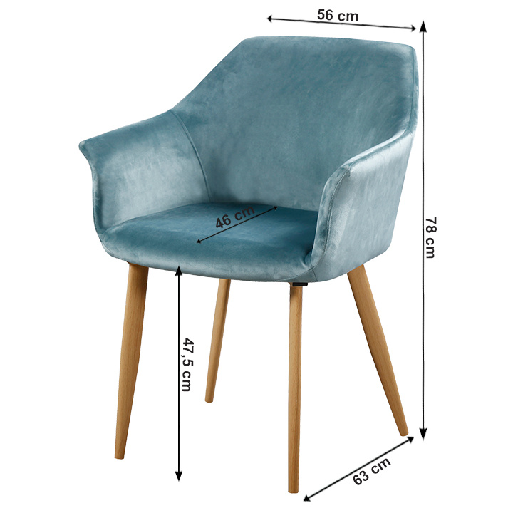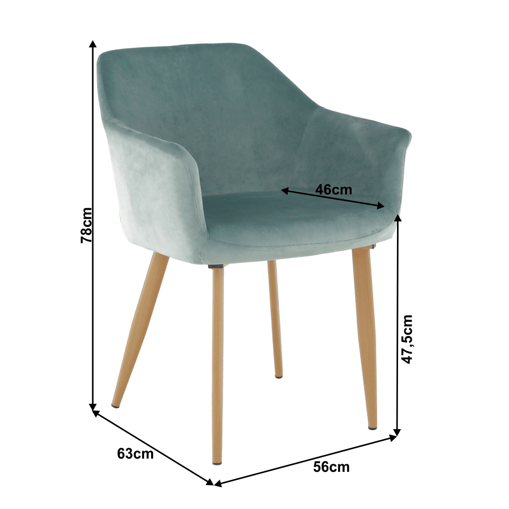 Designové křeslo ODOVEL Materiál: látka velvet/ kov Oděruodolnost textilie podle testu Martindale: 80 000 oděrek Barva: mentolová / buk Rozměry (ŠxHxV): 56x63x82 cm Výška sedu: 49 cm Hloubka sedu: 46 cm Nosnost: 90 kg Dodávané v demontu.