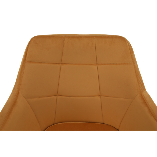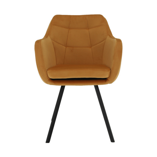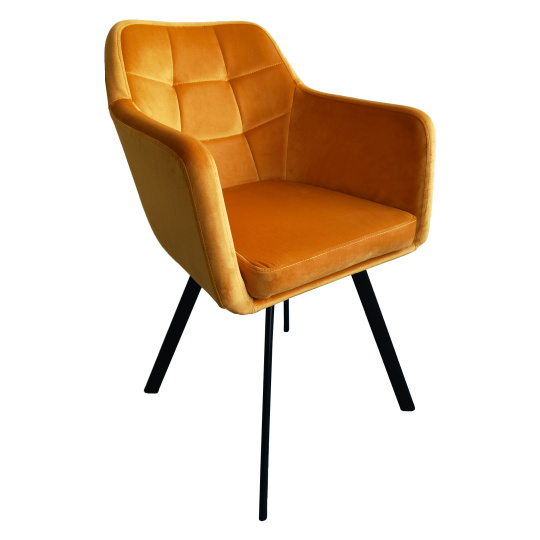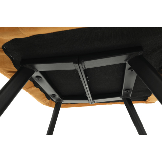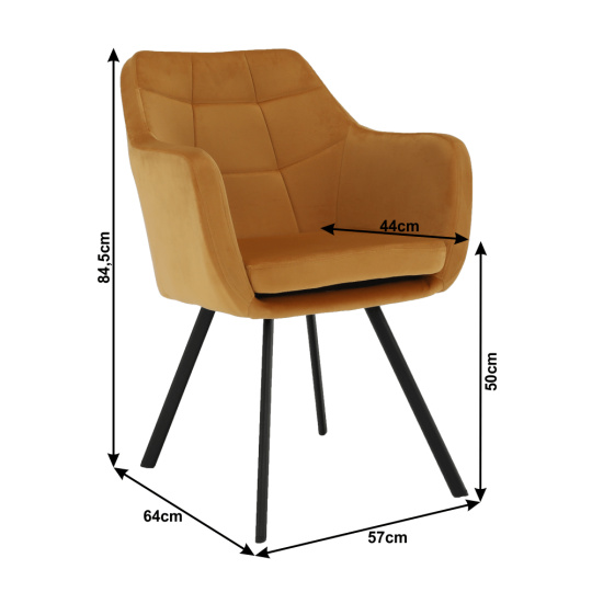Designové křeslo ZERON NEW Materiál: látka Velvet samet/kov Oděruodolnost textilie podle testu Martindale: 80 000 oděrů Barva: hořčicová/černá Rozměry (ŠxHxV): 60x60x86 cm Výška sedu: 50 cm Hloubka sedu: 42 cm Šířka sedu: 44 cm Výška opěrky zad: 40 cm Nosnost: 90 kg Dodáváno v demontu.