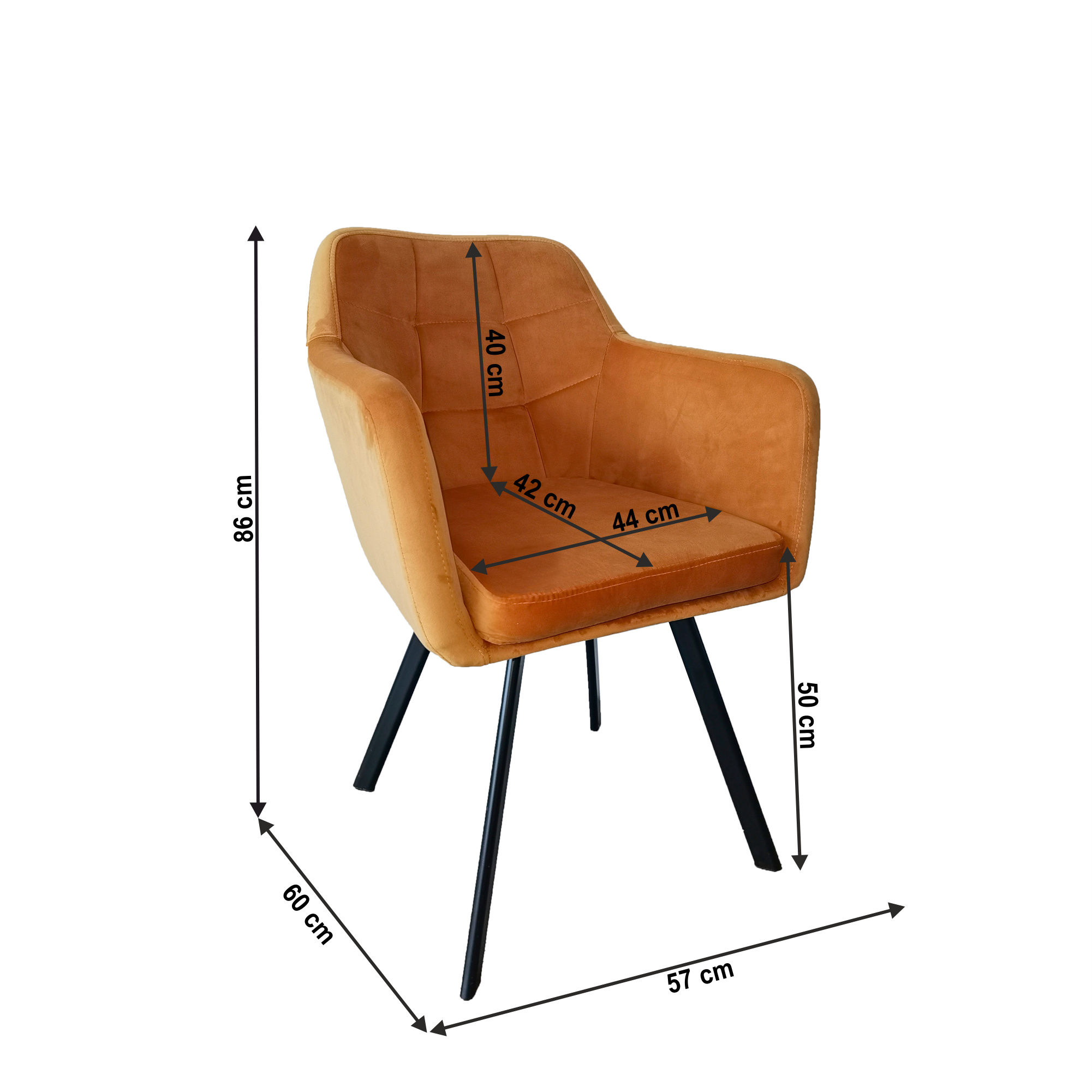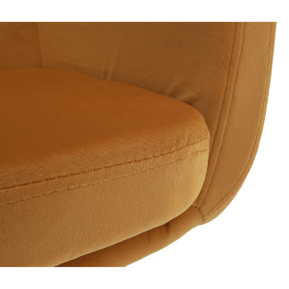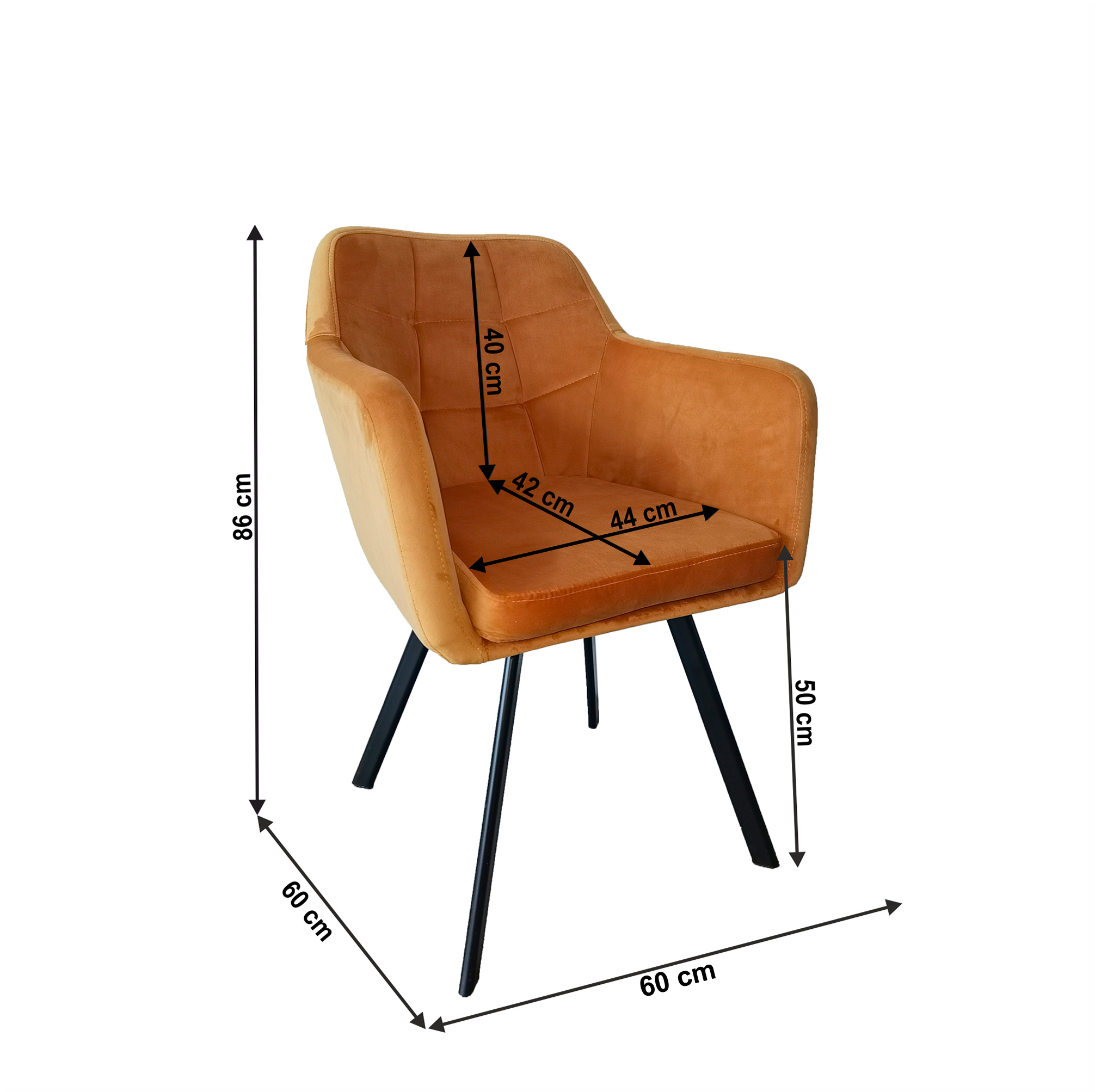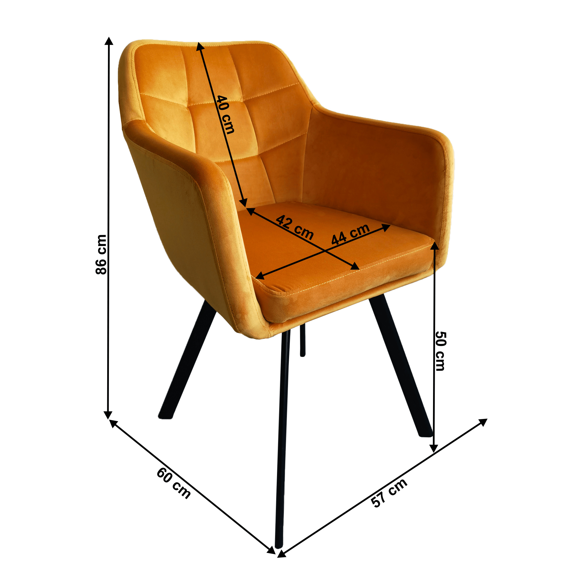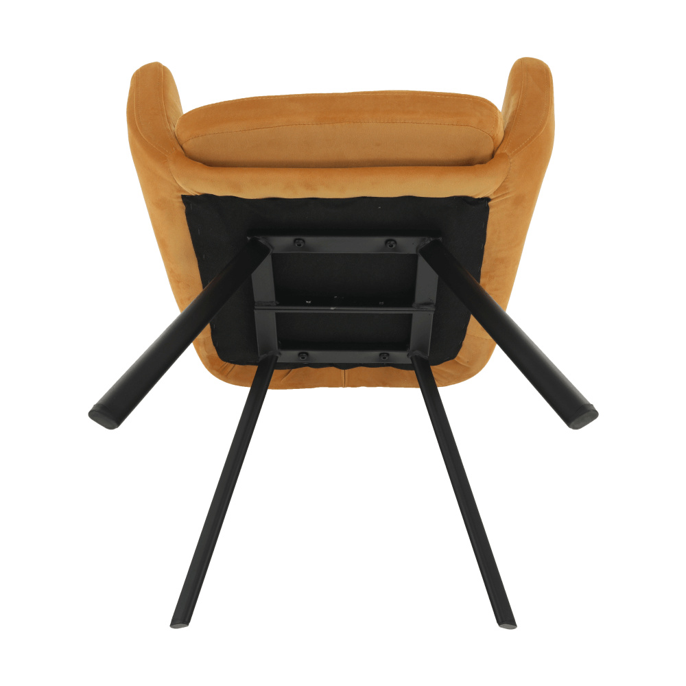 Designové křeslo ZERON NEW Materiál: látka Velvet samet/kov Oděruodolnost textilie podle testu Martindale: 80 000 oděrů Barva: hořčicová/černá Rozměry (ŠxHxV): 60x60x86 cm Výška sedu: 50 cm Hloubka sedu: 42 cm Šířka sedu: 44 cm Výška opěrky zad: 40 cm Nosnost: 90 kg Dodáváno v demontu.