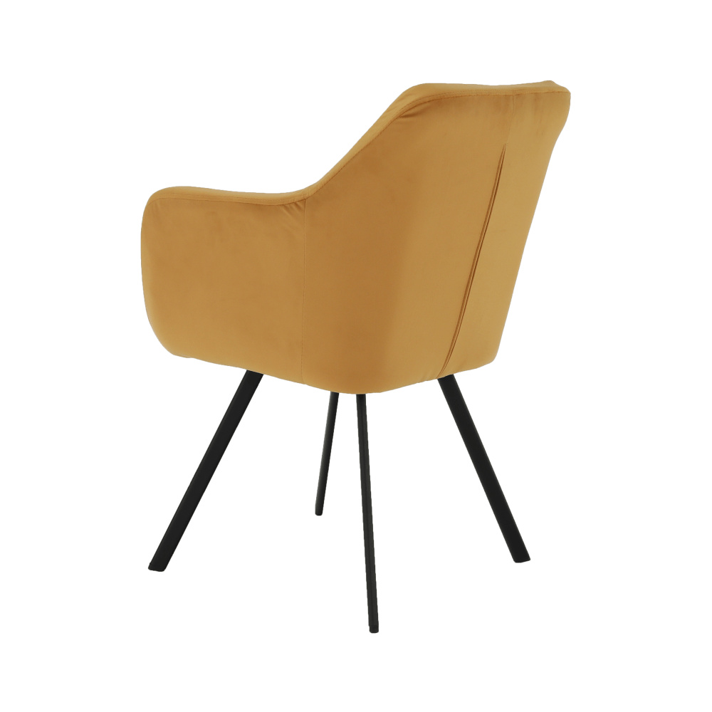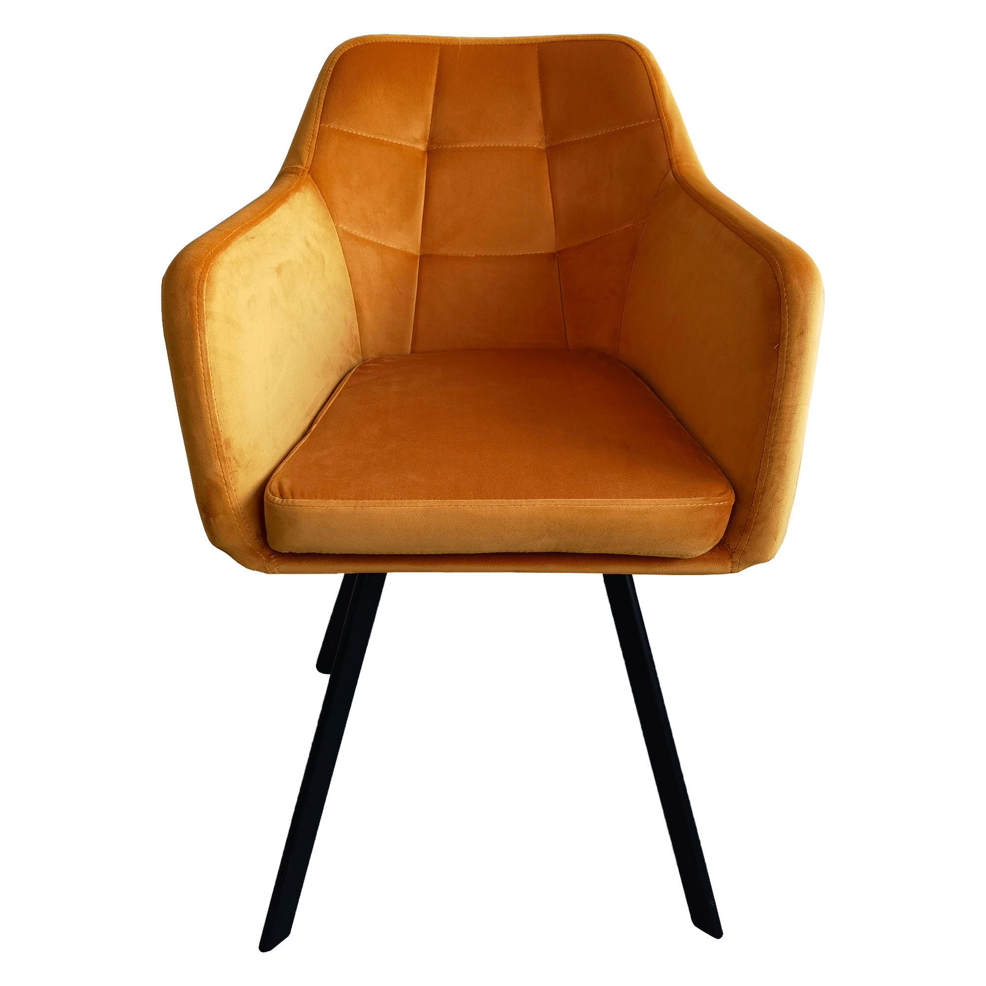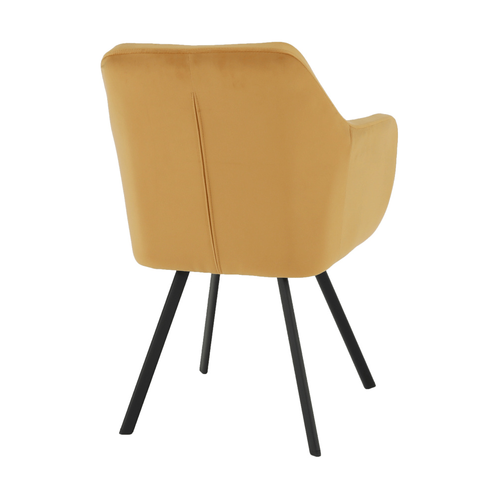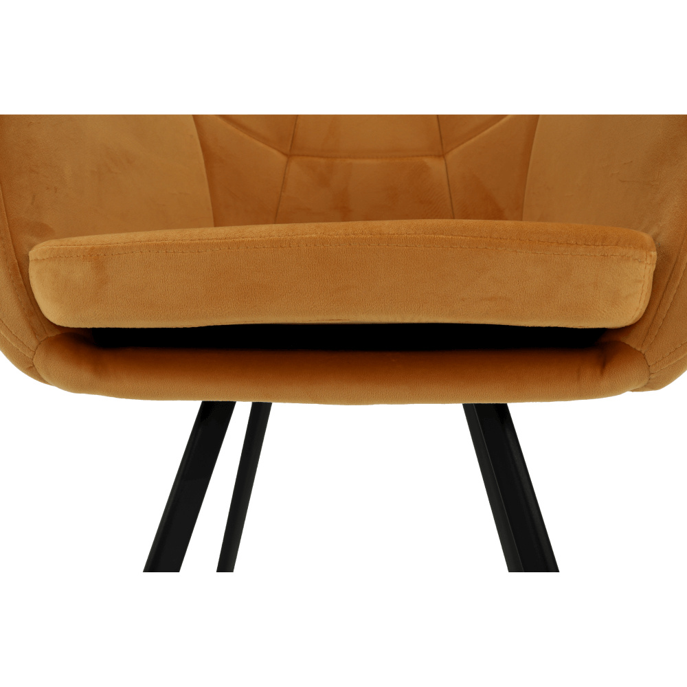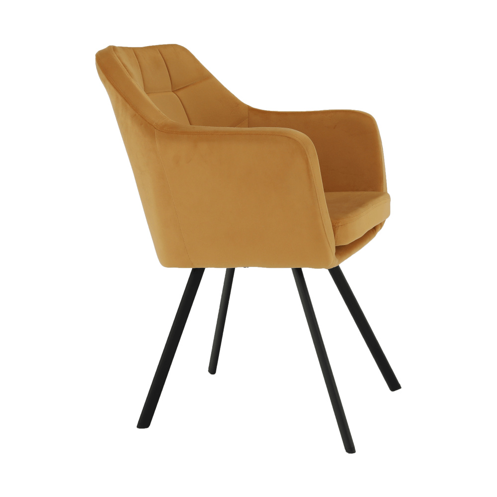 Designové křeslo ZERON NEW Materiál: látka Velvet samet/kov Oděruodolnost textilie podle testu Martindale: 80 000 oděrů Barva: hořčicová/černá Rozměry (ŠxHxV): 60x60x86 cm Výška sedu: 50 cm Hloubka sedu: 42 cm Šířka sedu: 44 cm Výška opěrky zad: 40 cm Nosnost: 90 kg Dodáváno v demontu.