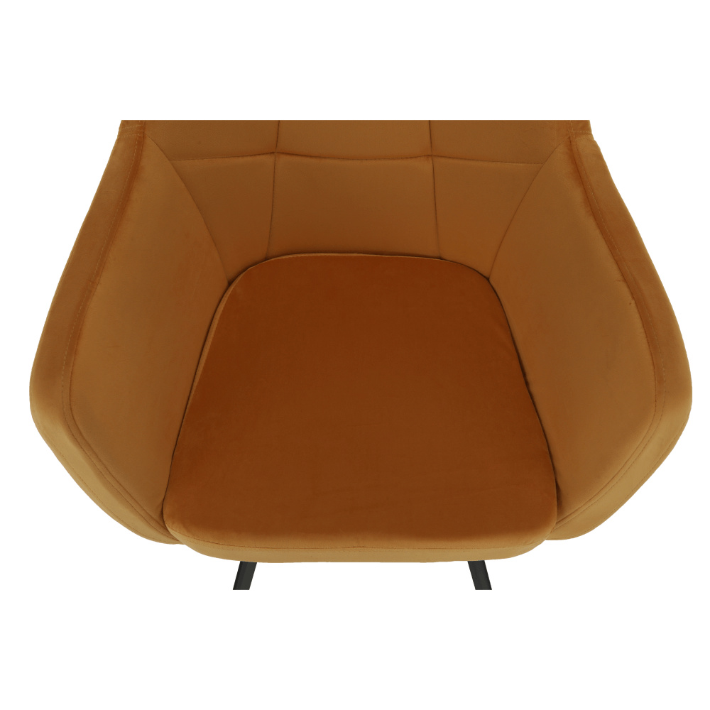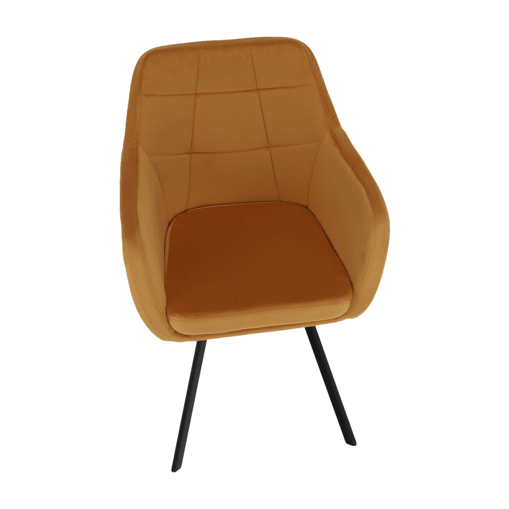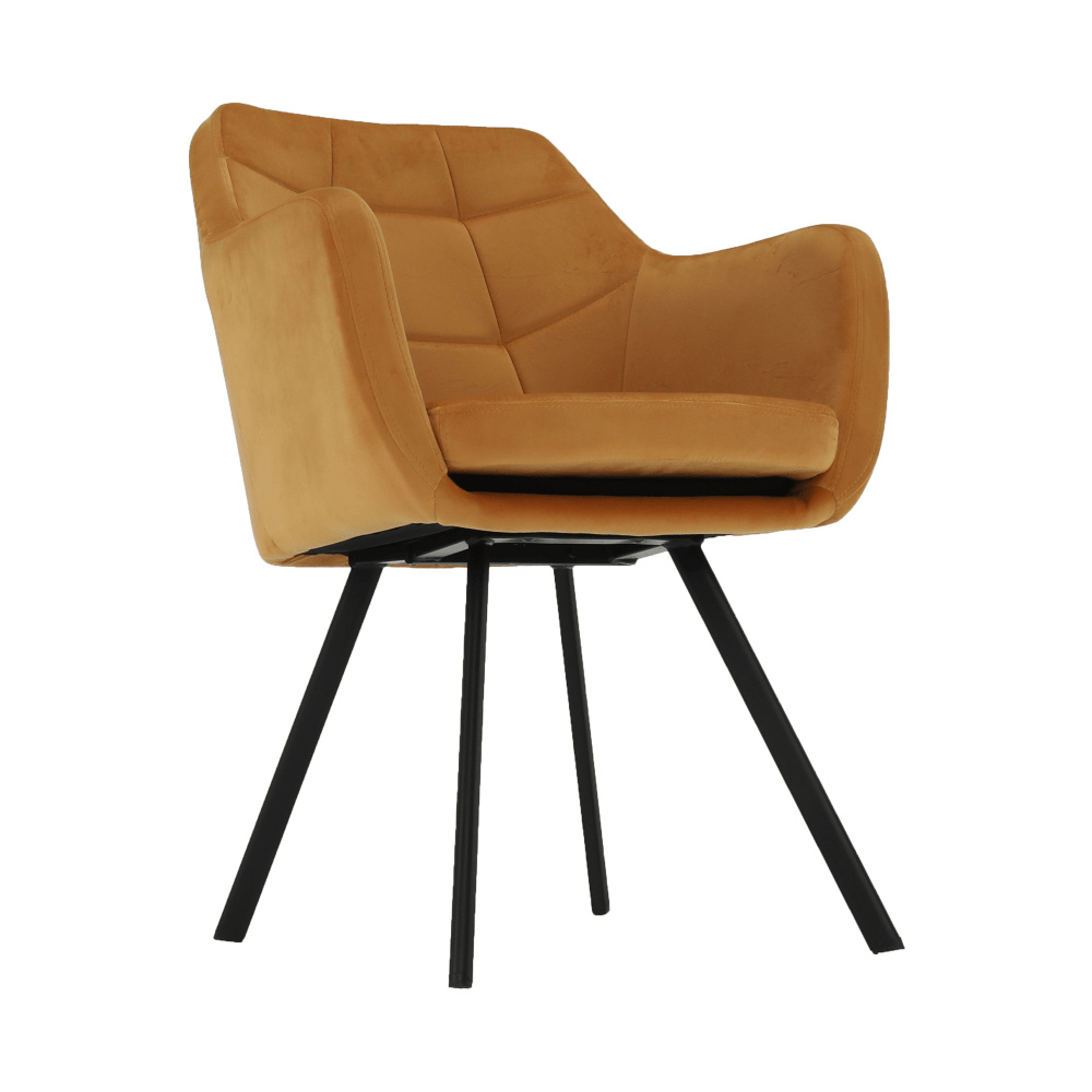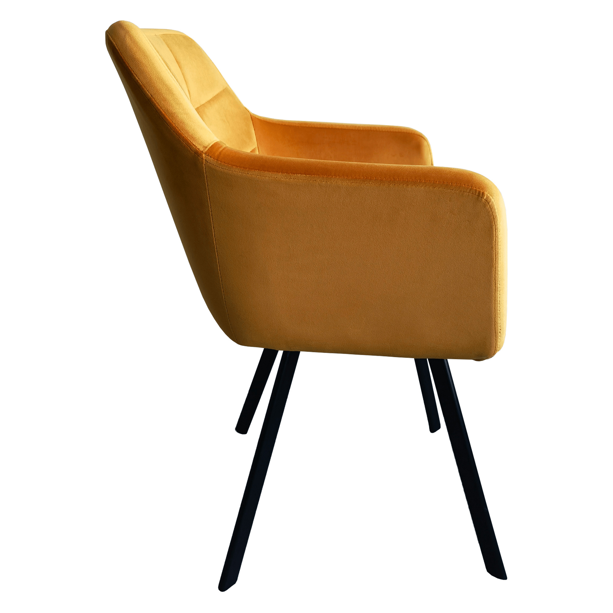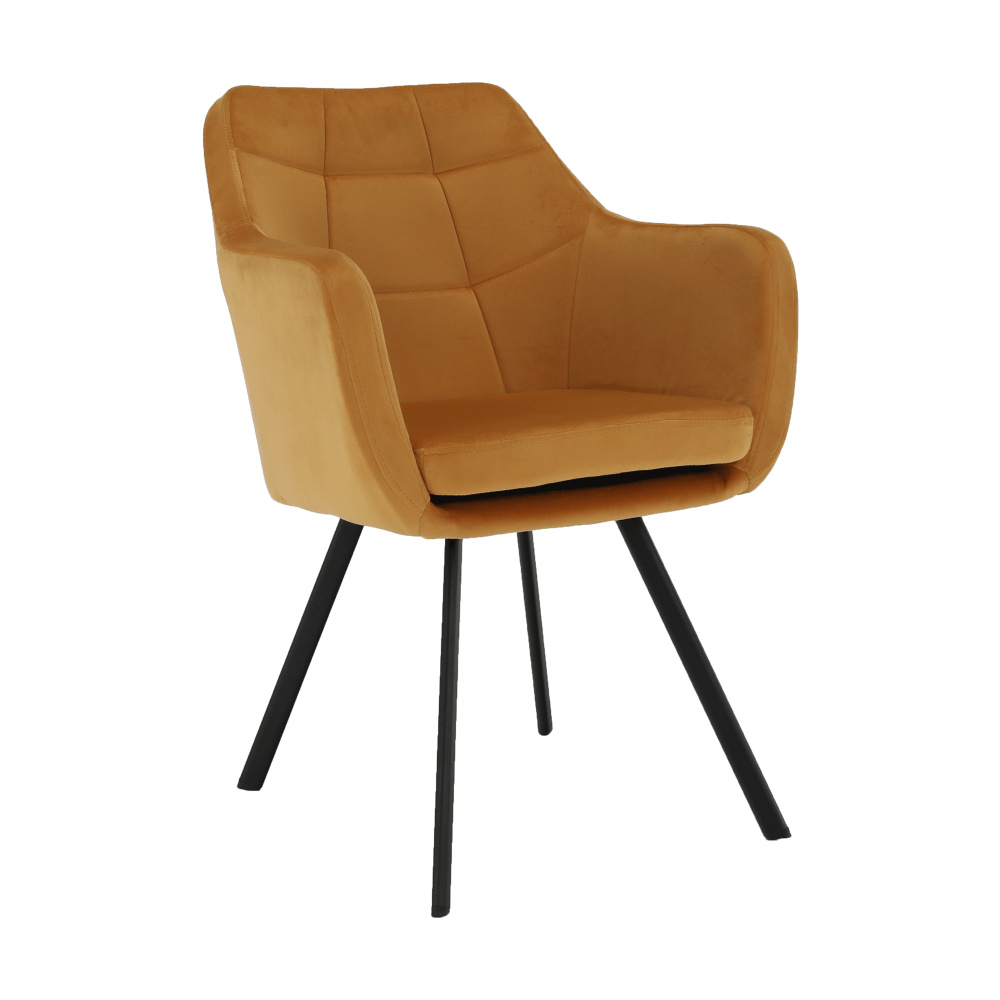 Designové křeslo ZERON NEW Materiál: látka Velvet samet/kov Oděruodolnost textilie podle testu Martindale: 80 000 oděrů Barva: hořčicová/černá Rozměry (ŠxHxV): 60x60x86 cm Výška sedu: 50 cm Hloubka sedu: 42 cm Šířka sedu: 44 cm Výška opěrky zad: 40 cm Nosnost: 90 kg Dodáváno v demontu.