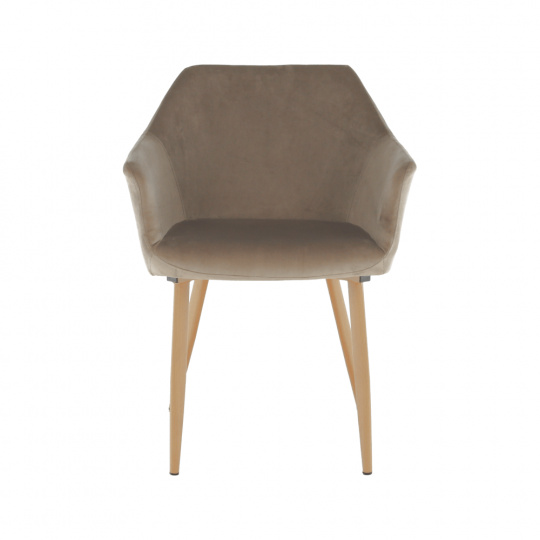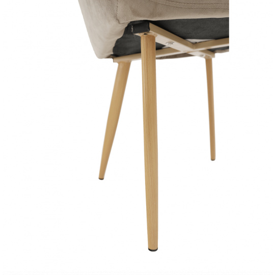 Designové křeslo ODOVEL Materiál: látka velvet / kov Oděruodolnost textilie podle testu Martindale: 80 000 oděrek Barva: taupe / buk Rozměry (ŠxHxV): 56x63x82 cm Výška sedu: 49 cm Hloubka sedu: 46 cm Nosnost: 90 kg Dodávané v demontu.