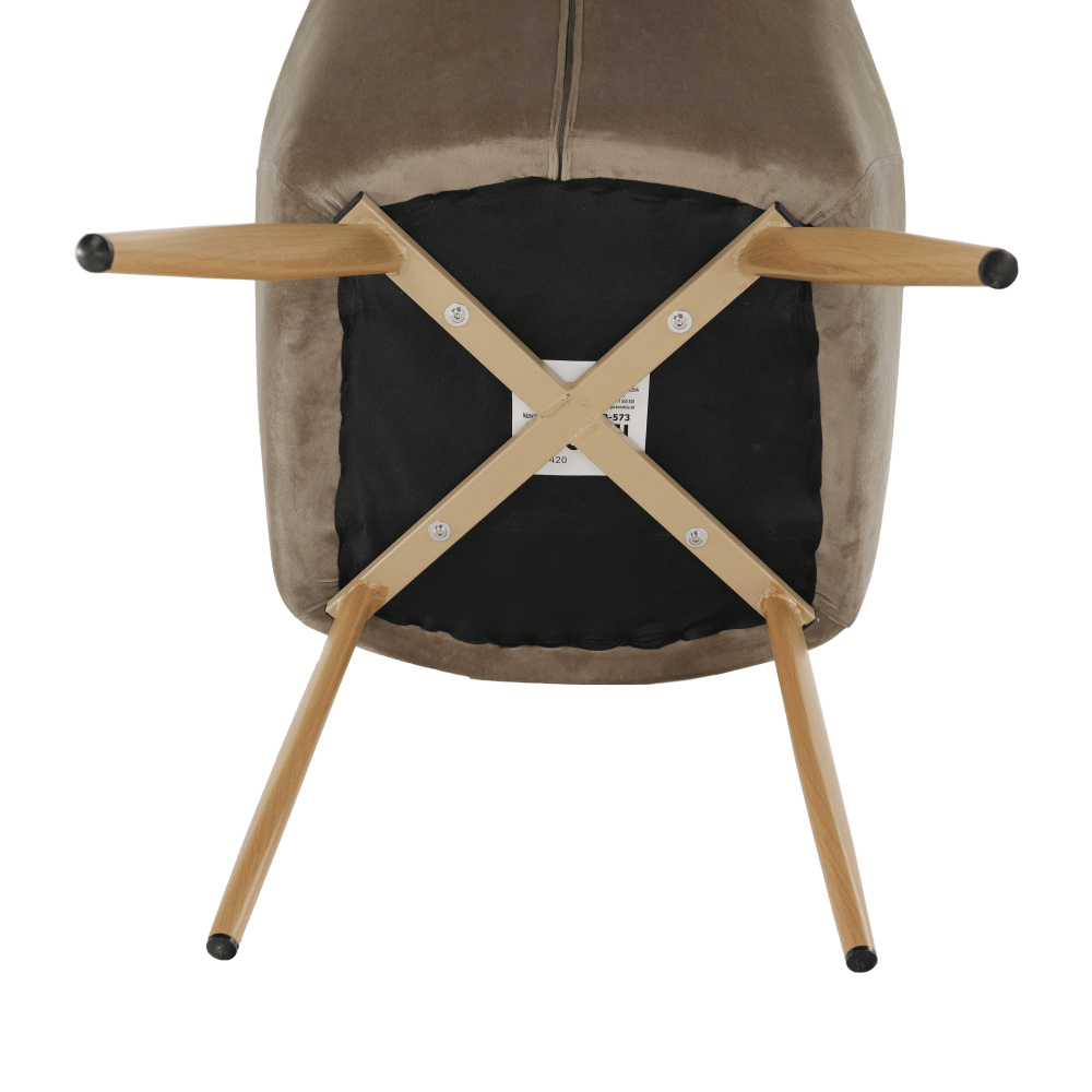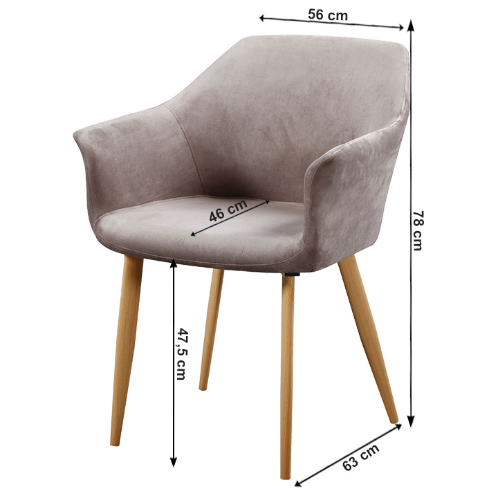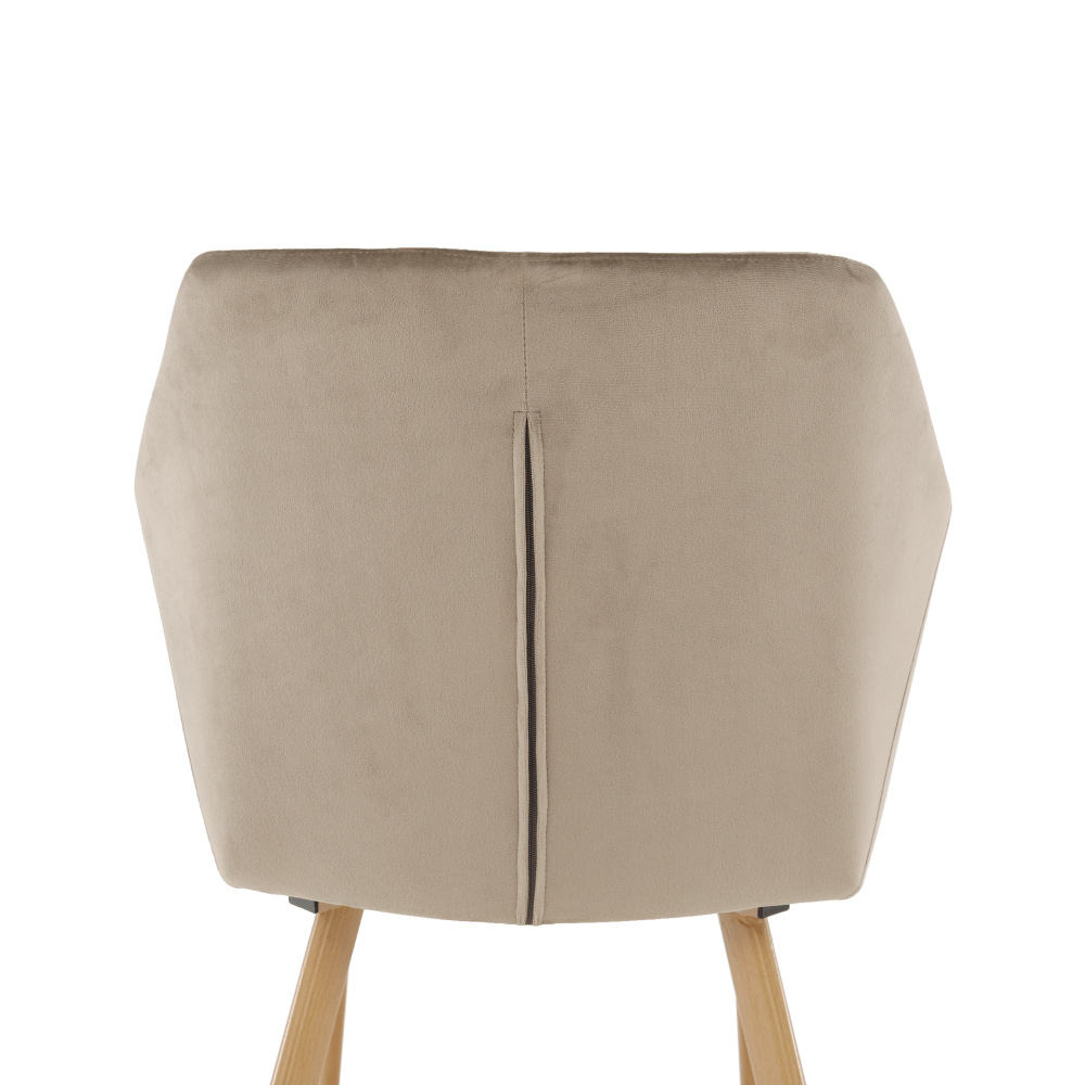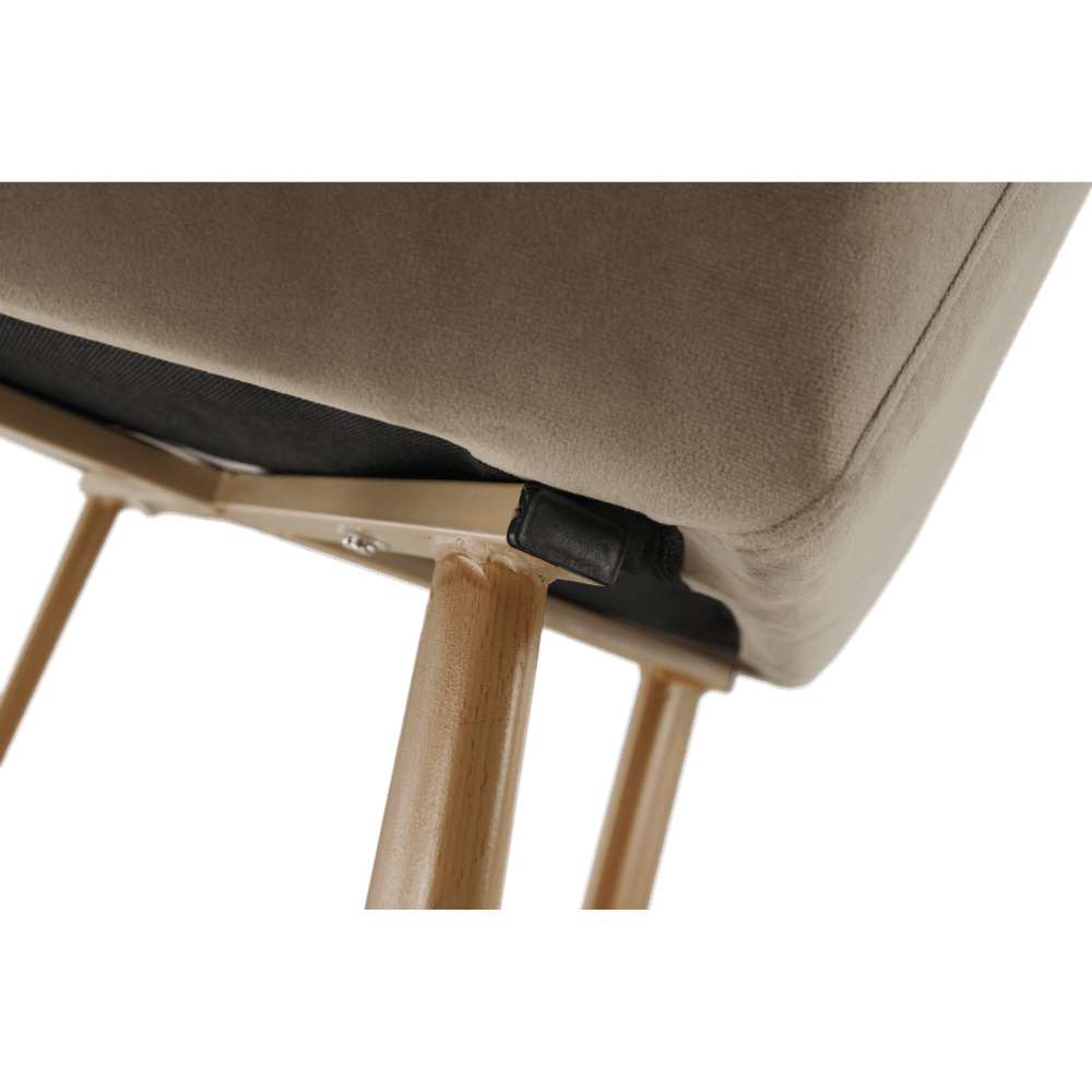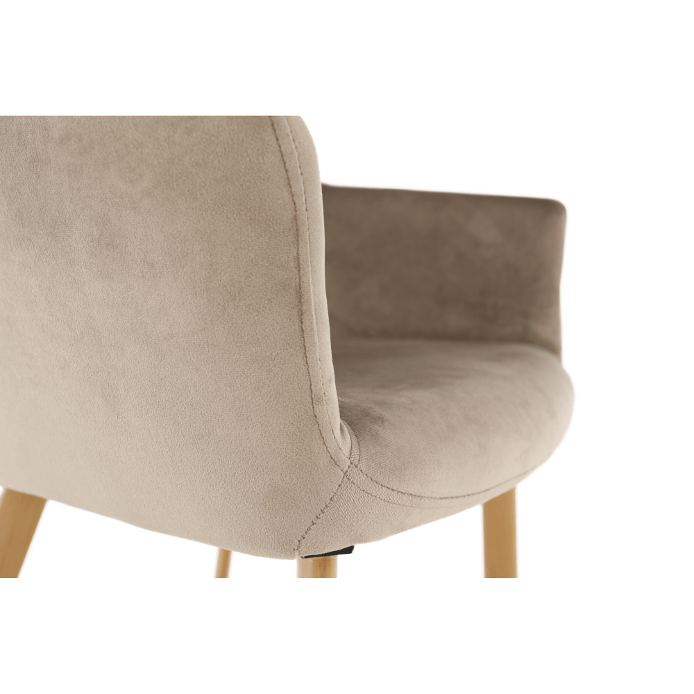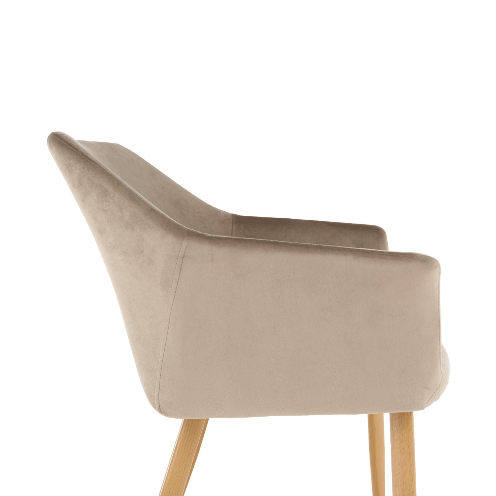 Designové křeslo ODOVEL Materiál: látka velvet / kov Oděruodolnost textilie podle testu Martindale: 80 000 oděrek Barva: taupe / buk Rozměry (ŠxHxV): 56x63x82 cm Výška sedu: 49 cm Hloubka sedu: 46 cm Nosnost: 90 kg Dodávané v demontu.