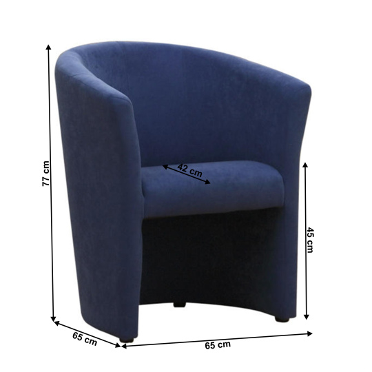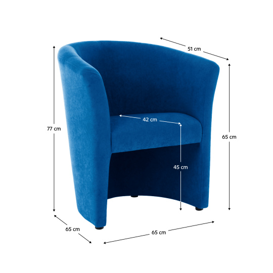 křeslo, materiál: mikrofáze, Oděruodolnost textilie podle testu Martindale: 85 000 oděrek odstín: modrá, rozměry (ŠxHxV): 65x60x77 cm. Nosnost: 120 kg Možnost objednání ve vyobrazených barevných provedeních látek: Savana, Kronos, Soro, Lava v cene 3.150 Kč, v látce mikrofáza za cenu 2.690 Kč a v celé ekokůži za cenu 3.190 Kč. Při individuální objednávce je třeba zaplatit 20% zálohu z dané částky. Po uhrazení zálohy bude Vaša objednávka zadána do výroby. Dodací lhůta 6-8 týdnů.