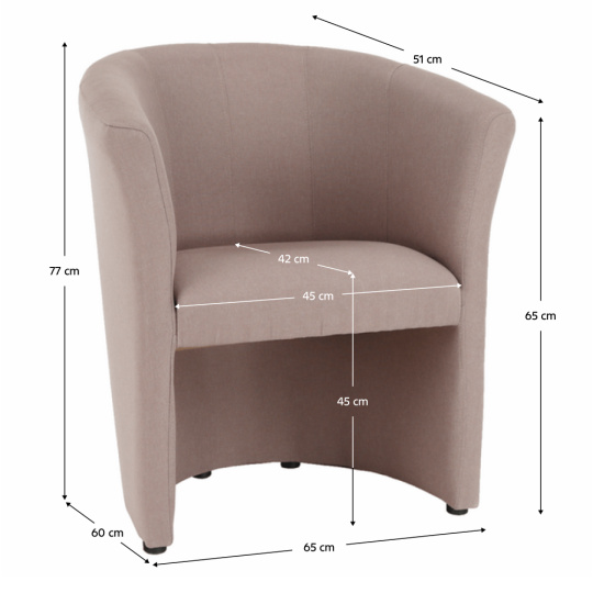 Materiál: látka Savana Oděruodolnost textilie podle testu Martindale: 80 000 oděrů Barva: pudrově růžová 61 Rozměry (ŠxHxV): 65x60x77 cm Výška sedu: 45 cm Hloubka sedu: 42 cm Šířka sedu: 45 cm Výška opěrky zad: 32 cm Výška nožiček: 5 cm Celočalouněné Výplň: purpena Nosnost: 120 kg Dodáváno v monte Možnost objednání ve vyobrazených barevných provedeních látek: Savana, Kronos, Soro, Lava v cene 3.250 Kč, v látce Coral Boucle v ceně 2.950 Kč, v mikrofázi za cenu 2.790 Kč, v ekokůži a v kombinaci ekokůže+látka Lava za cenu 3.290 Kč. Při individuální objednávce je třeba zaplatit 20% zálohu z dané částky. Po uhrazení zálohy bude Vaša objednávka zadána do výroby. Dodací lhůta 6-8 týdnů.