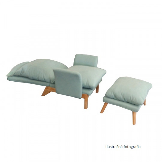 Křeslo s podnoží ZANDER Materiál: látka / dřevo Oděruodolnost textilie podle testu Martindale: 91 000 oděrek Barevné provedení: mentolová / přírodní Rozměry křesla (ŠxHxV): 82x83x99 cm Hloubka sedu: 49,5 cm Rozměry taburet (ŠxHxV): 63x51x40 cm Nosnost křesla: 100 kg Nosnost taburetu: 90 kg Dodávané v demontu.