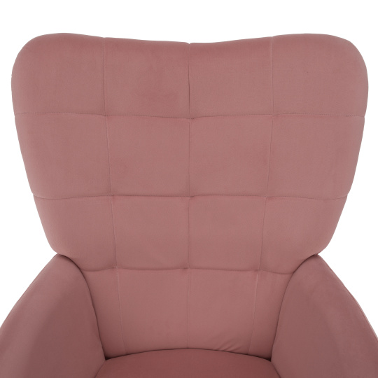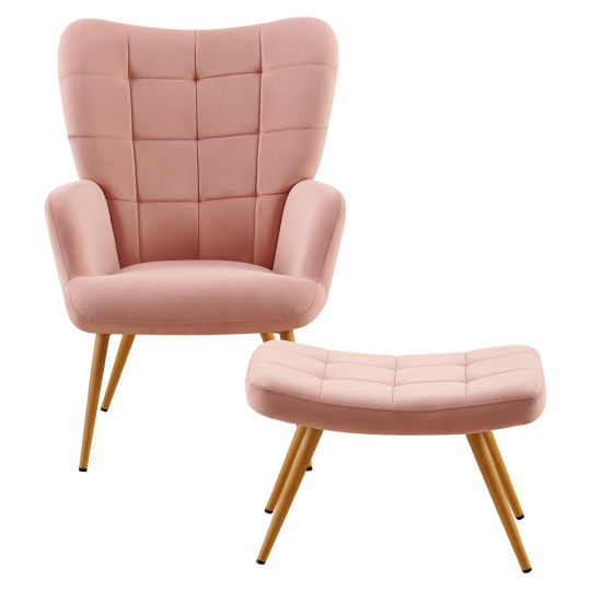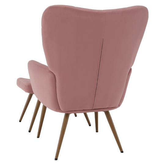 Materiál: látka Velvet 32/kov Oděruodolnost textilie podle testu Martindale: 95 000 oděrů Barevné provedení: růžová/dub Rozměry křesla (ŠxHxV): 70x78x97 cm Výška sedu: 46 cm Hloubka sedu: 53 cm Rozměry podnože (ŠxHxV): 56,5x40x39 cm Nožičky na podnožce jsou výškově nastavitelné Nosnost křesla: 90 kg Nosnost podnože: 80 kg Dodáváno v demontu