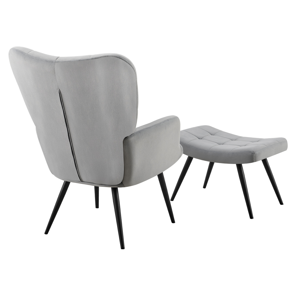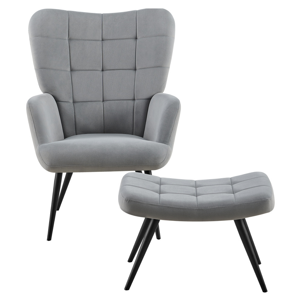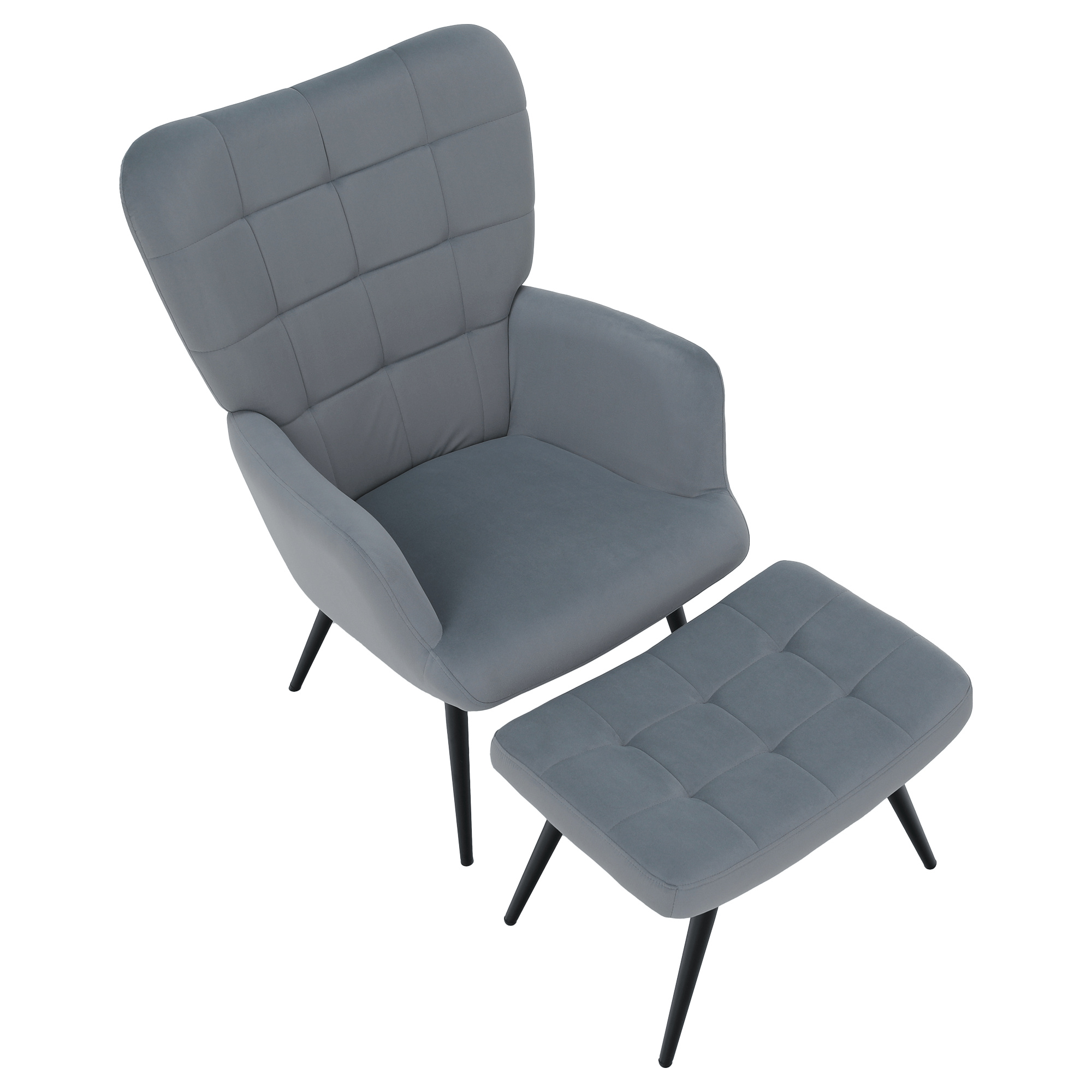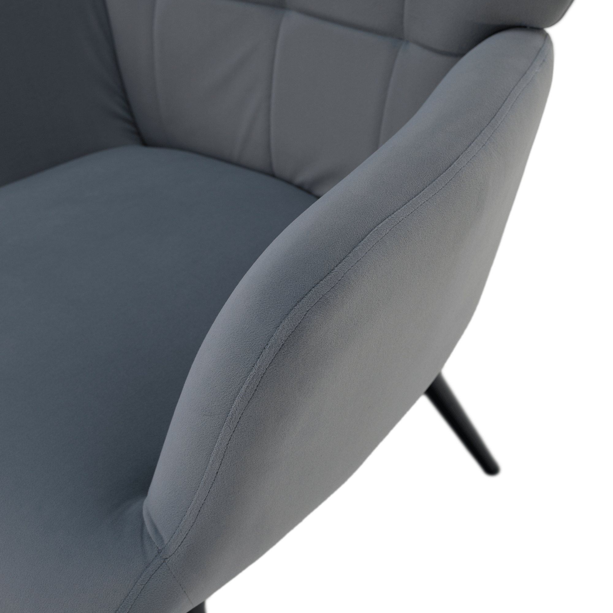 Materiál: látka Velvet 51/kov Oděruodolnost textilie podle testu Martindale: 95 000 oděrů Barevné provedení: šedá/černá Rozměry křesla (ŠxHxV): 70x78x97 cm Výška sedu: 46 cm Hloubka sedu: 53 cm Rozměry podnože (ŠxHxV): 56,5x40x39 cm Nožičky na podnožce jsou výškově nastavitelné Nosnost křesla: 90 kg Nosnost podnože: 80 kg Dodáváno v demontu