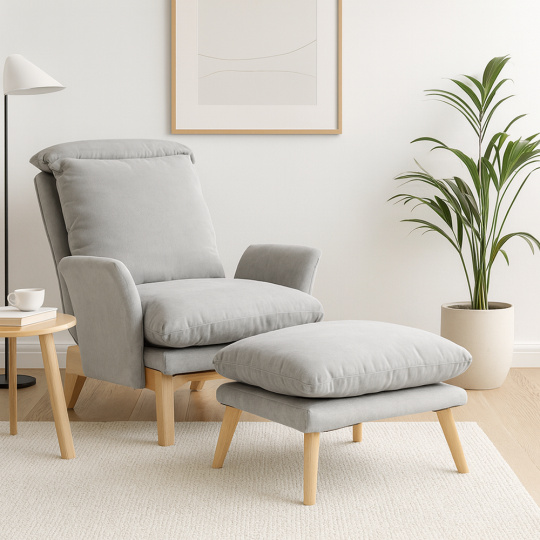 Křeslo s podnoží, světlešedá/přírodní, ZANDER