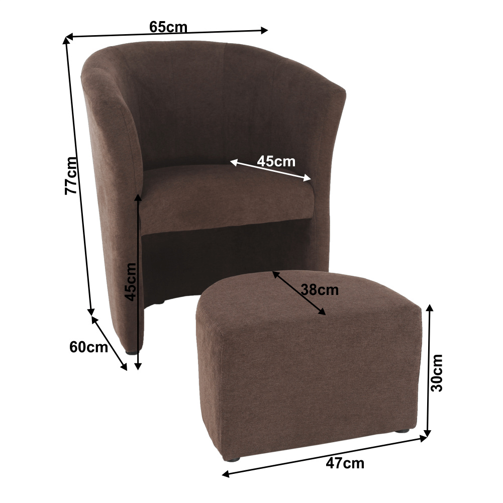 Křeslo s taburetem ROSE Materiál: látka Soro Oděruodolnost textilie podle testu Martindale: 90 000 - 100 000 oděrů Barva: 28 hnědá Rozměry křeslo (ŠxVxH): 66x77x60 cm Výška sedu: 45 cm Hloubka sedu: 42 cm Rozměry taburet (ŠxHxV): 47x38x30 cm Hmotnost: 17 kg Nosnost: 120 kg Taburet jako součást celočalouněné Dodávané v demontu. Možnost objednání v látce Soro, Savana, Kronos: 3.950 Kč v látce mikrofáze: 3.690 Kč v ekokůži nebo v látce Lava: 4.050 Kč. Při individuální objednávce je třeba zaplatit 20% zálohu z dané částky. Po uhrazení zálohy bude Vaša objednávka zadána do výroby. Doba dodání 6-8 týdnů.