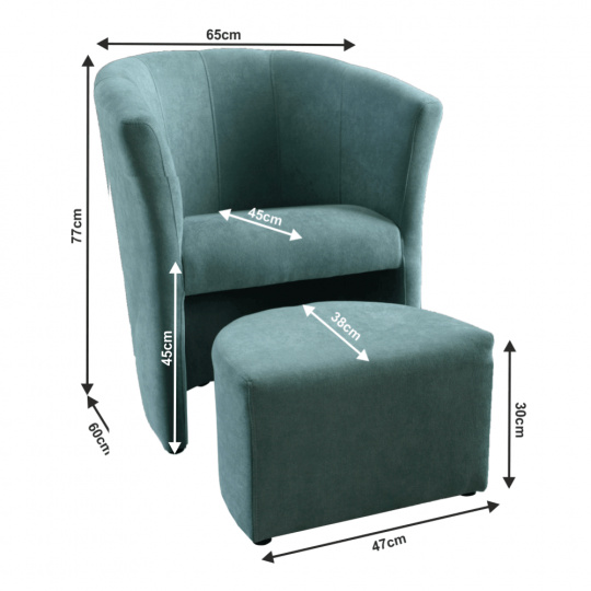Křeslo s taburetem ROSE Materiál: látka Soro Oděruodolnost textilie podle testu Martindale: 90 000 - 100 000 oděrů Barva: 34 mentolová Rozměry křeslo (ŠxVxH): 66x77x60 cm Výška sedu: 45 cm Hloubka sedu: 42 cm Rozměry taburet (ŠxHxV): 47x38x30 cm Hmotnost: 17 kg Nosnost: 120 kg Taburet jako součást celočalouněné Dodávané v demontu. Možnost objednání v látce Soro, Savana, Kronos: 3.950 Kč v látce mikrofáze: 3.690 Kč v ekokůži nebo v látce Lava: 4.050 Kč. Při individuální objednávce je třeba zaplatit 20% zálohu z dané částky. Po uhrazení zálohy bude Vaša objednávka zadána do výroby. Doba dodání 6-8 týdnů.
