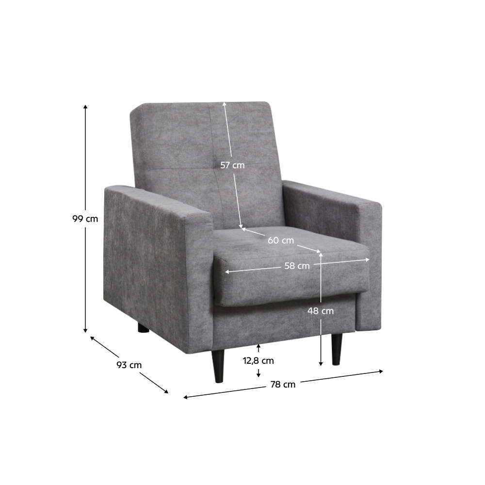 Materiál: látka Enjoy 23 Oděruodolnost textilie podle testu Martindale: 45 000 oděrů Barva: šedá Rozměry (ŠxHxV): 78x93x99 cm Výška sedu: 48 cm Hloubka sedu: 60 cm Šířka sedu: 58 cm Výška opěrky zad: 57 cm Kovové nožičky Barva nožiček: černá Výška spodního prostoru od podlahy: 12,8 cm Výplň: pružina falista/pur pěna Nosnost na osobu: 90 kg Celočalouněná Dodáváno v demontu Možnost objednání v 8 barevných provedeních látky Enjoy v ceně 6.590 Kč. Při individuální objednávce je třeba zaplatit 20% zálohu z dané částky. Po uhrazení zálohy bude Váš požadavek zadán do výroby. Dodací lhůta 6-8 týdnů.