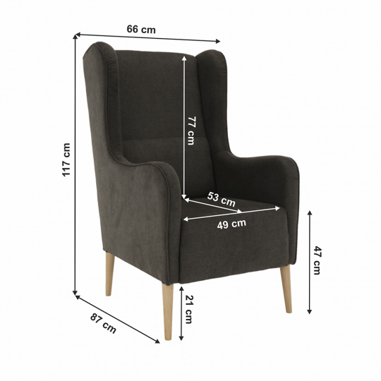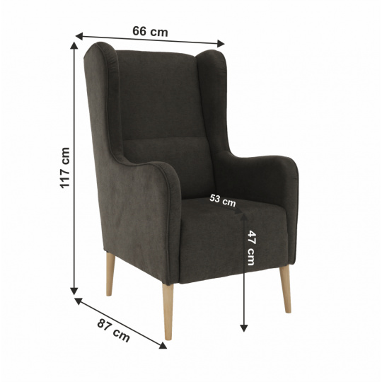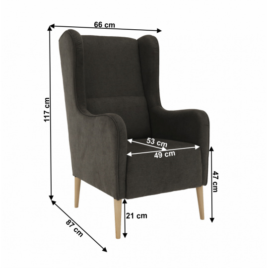Materiál: látka Soro / dřevo Oděruodolnost textilie podle testu Martindale: 90 000 - 100 000 oděrů Barva: 24 hnědá / buk Rozměry (ŠxHxV): 66x87x117 cm Výška sedu: 47 cm Hloubka sedu: 53 cm Šířka sedu: 49 cm Výška opěrky zad: 77 cm Výška spodního prostoru od podlahy: 21 cm Nosnost: 120 kg Vhodné pro seniory ušák Dodávané v demontu. Možnost objednání v 6 barevných provedeních látky Soro nebo látky Kronos za cenu 8.290 Kč. Při individuální objednávce je třeba zaplatit 20% zálohu z dané částky. Po uhrazení zálohy bude Vaša objednávka zadána do výroby. Doba dodání 6-8 týdnů.
