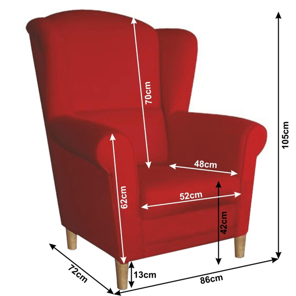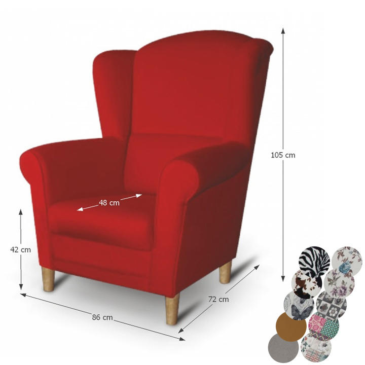 Křeslo-ušák Charlot v červeném barevném provedení látky. Oděruodolnost textilie podle testu Martindale: 85 000 oděrek Dřevěné nožičky v barevném provedení buk. Rozměry (ŠxHxV): 86x82x105 cm Nosnost: 120 kg Možnost objednání v 6 barevných provedeních látky Alova v ceně 7.450 Kč nebo látky Soro v ceně 8.290 Kč a ve 4 barevných provedeních látky Coral v ceně 7.790 Kč. Při individuální objednávce je třeba zaplatit 20% zálohu z dané částky. Po uhrazení zálohy bude Váš požadavek zadán do výroby. Dodací lhůta 6-8 týdnů.