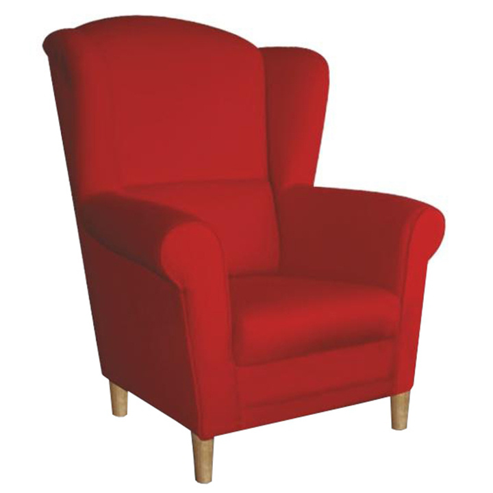 Křeslo ušák, látka červená, Charlot