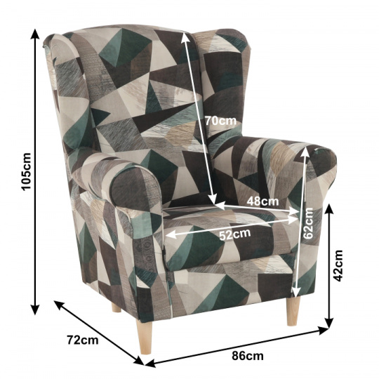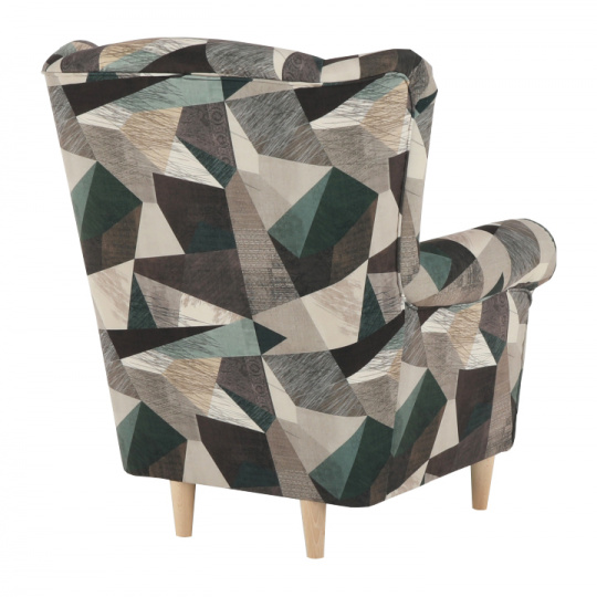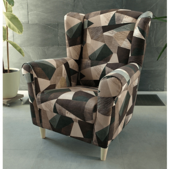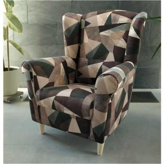 Křeslo ušák, látka hnědozelená vzor, CHARLOT