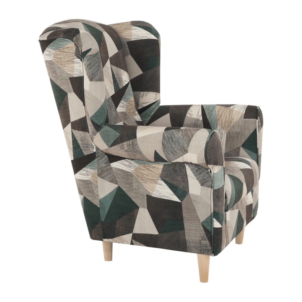 Křeslo ušák, látka hnědozelená vzor, CHARLOT
