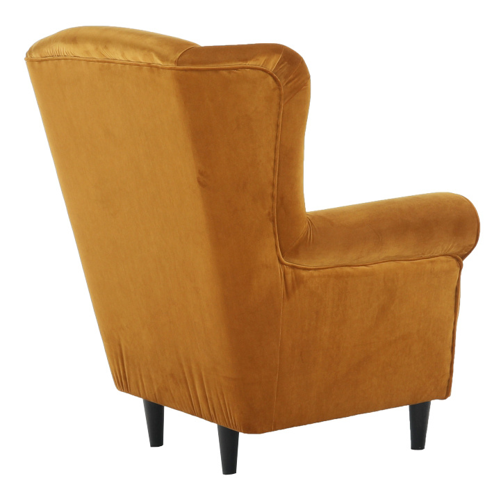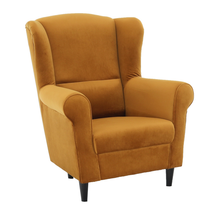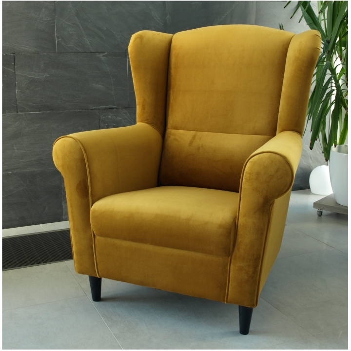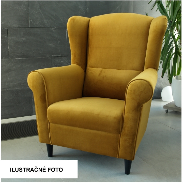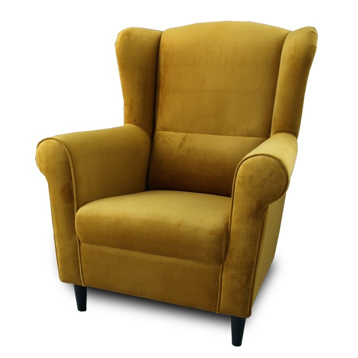 Křeslo ušák, látka hořčicová, Charlot