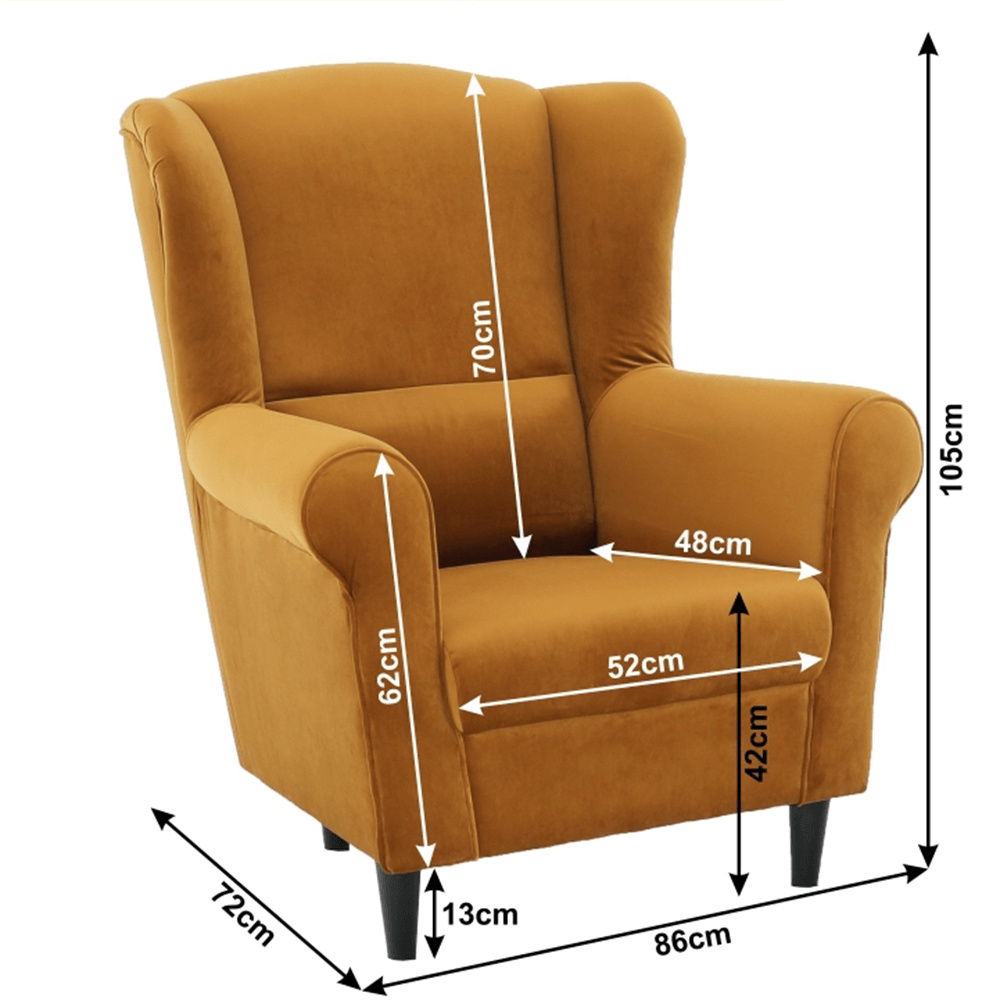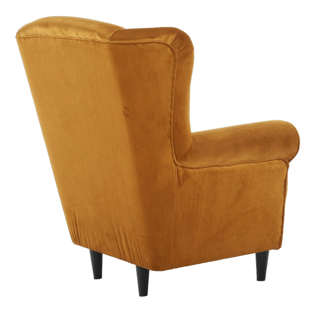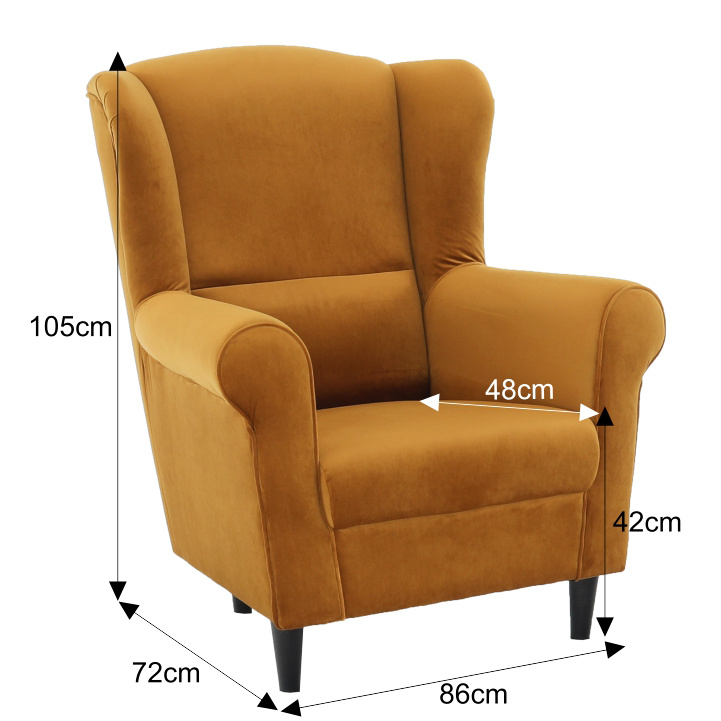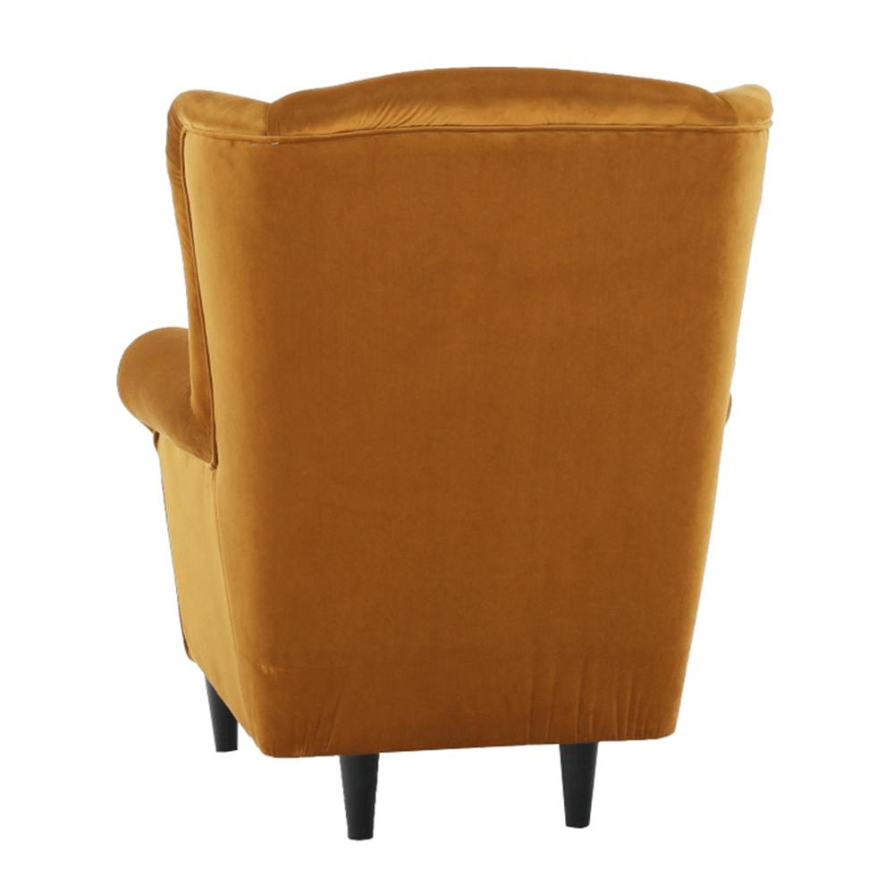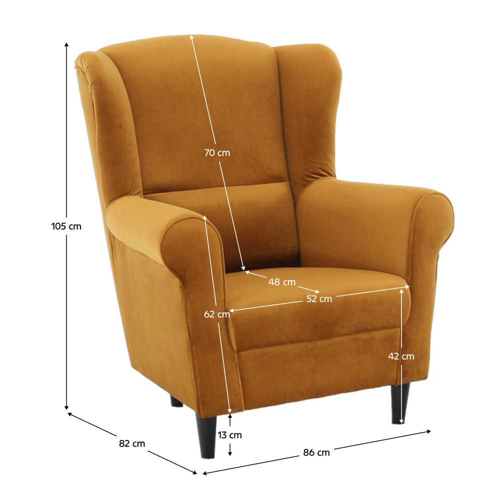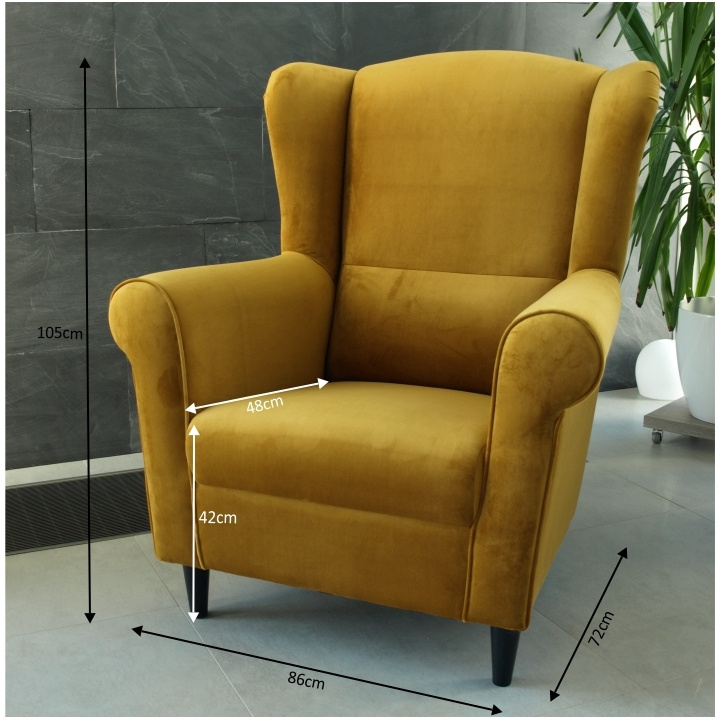 Křeslo-ušák Charlot v hořčičný barevném provedení látky. Oděruodolnost textilie podle testu Martindale: 90 000 oděrek Dřevěné nožičky v barevném provedení černá. Rozměry (ŠxHxV): 86x82x105 cm Nosnost: 120 kg Možnost objednání v 6 barevných provedeních látky Alova v ceně 7.450 Kč nebo látky Soro v ceně 8.290 Kč a ve 4 barevných provedeních látky Coral v ceně 7.790 Kč. Při individuální objednávce je třeba zaplatit 20% zálohu z dané částky. Po uhrazení zálohy bude Váš požadavek zadán do výroby. Dodací lhůta 6-8 týdnů.