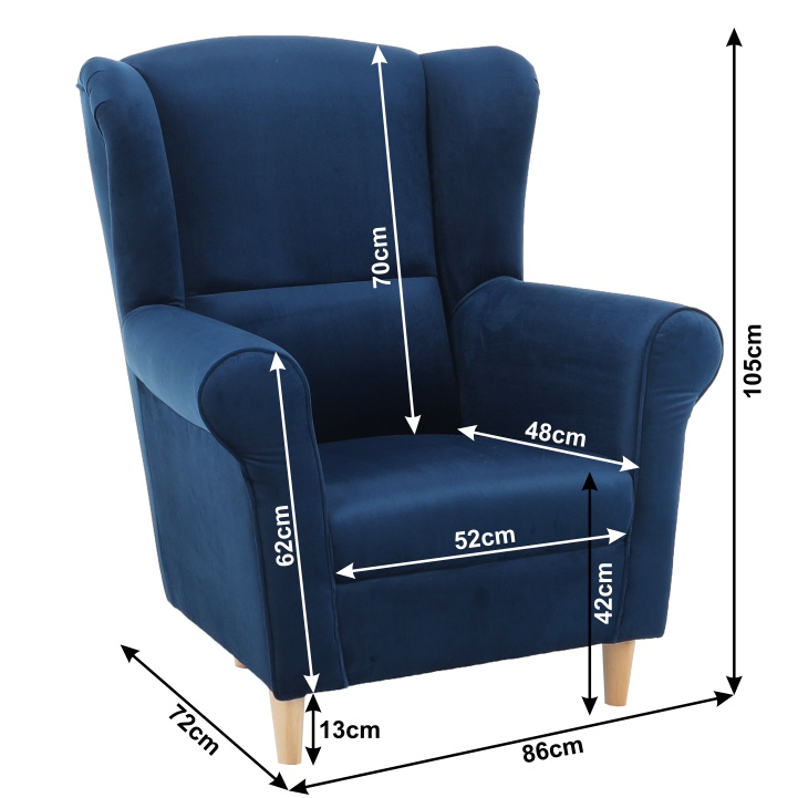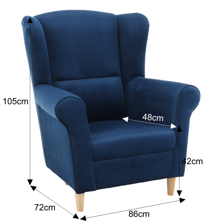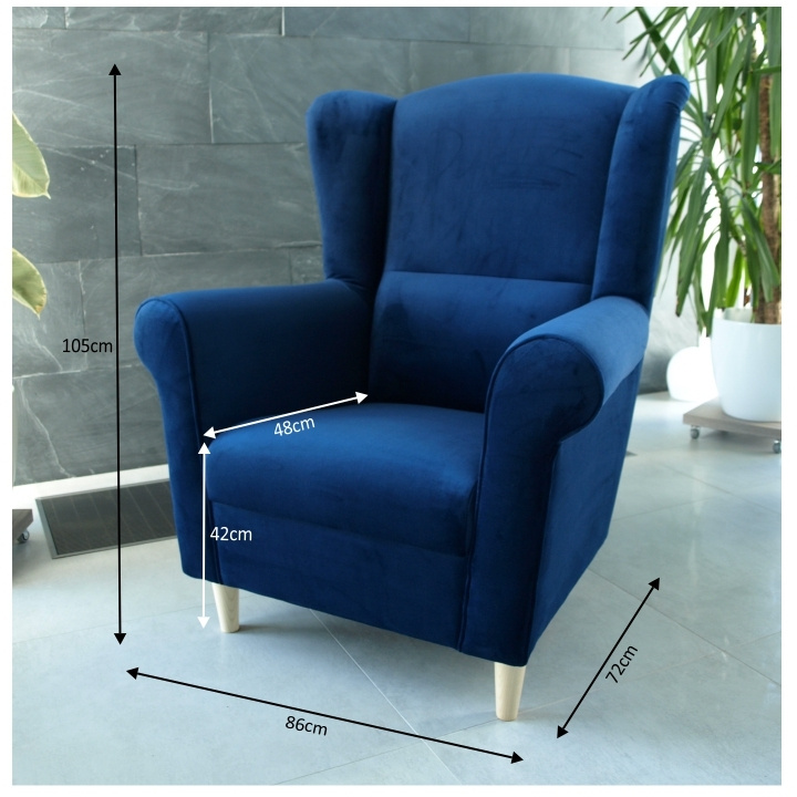 Křeslo-ušák CHARLOT v barevném provedení látky riviera modrá 81. Oděruodolnost textilie podle testu Martindale: 90 000 oděrek Dřevěné nožičky. Rozměry (ŠxHxV): 86x82x105 cm Výška zádové opěrky: 70 cm Výška područky: 62 cm Nosnost: 120 kg Dodávané v demontu. Možnost objednání v 6 barevných provedeních látky Alova v ceně 7.450 Kč nebo látky Soro v ceně 8.290 Kč a ve 4 barevných provedeních látky Coral v ceně 7.790 Kč. Při individuální objednávce je třeba zaplatit 20% zálohu z dané částky. Po uhrazení zálohy bude Váš požadavek zadán do výroby. Dodací lhůta 6-8 týdnů.