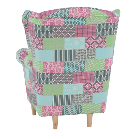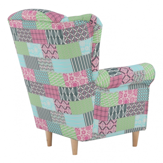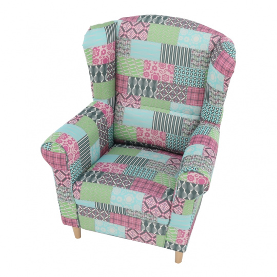Křeslo ušák, látka patchwork M1, CHARLOT