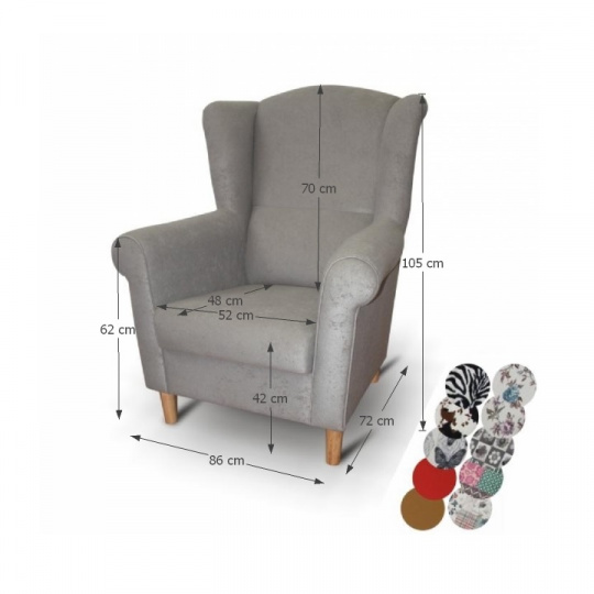 Křeslo-ušák Charlot v šedém barevném provedení látky. Oděruodolnost textilie podle testu Martindale: 85 000 oděrek Dřevěné nožičky v barevném provedení buk. Rozměry (ŠxHxV): 86x82x105 cm Nosnost: 120 kg Možnosť objednania v 6 farebných prevedeniach látky alova v cene 7.230 Kč nebo látky Soro v ceně 8.290 Kč. Při individuální objednávce je třeba zaplatit 20% zálohu z dané částky. Po uhrazení zálohy bude Vaša objednávka zadána do výroby. Doba dodání 6-8 týdnů.