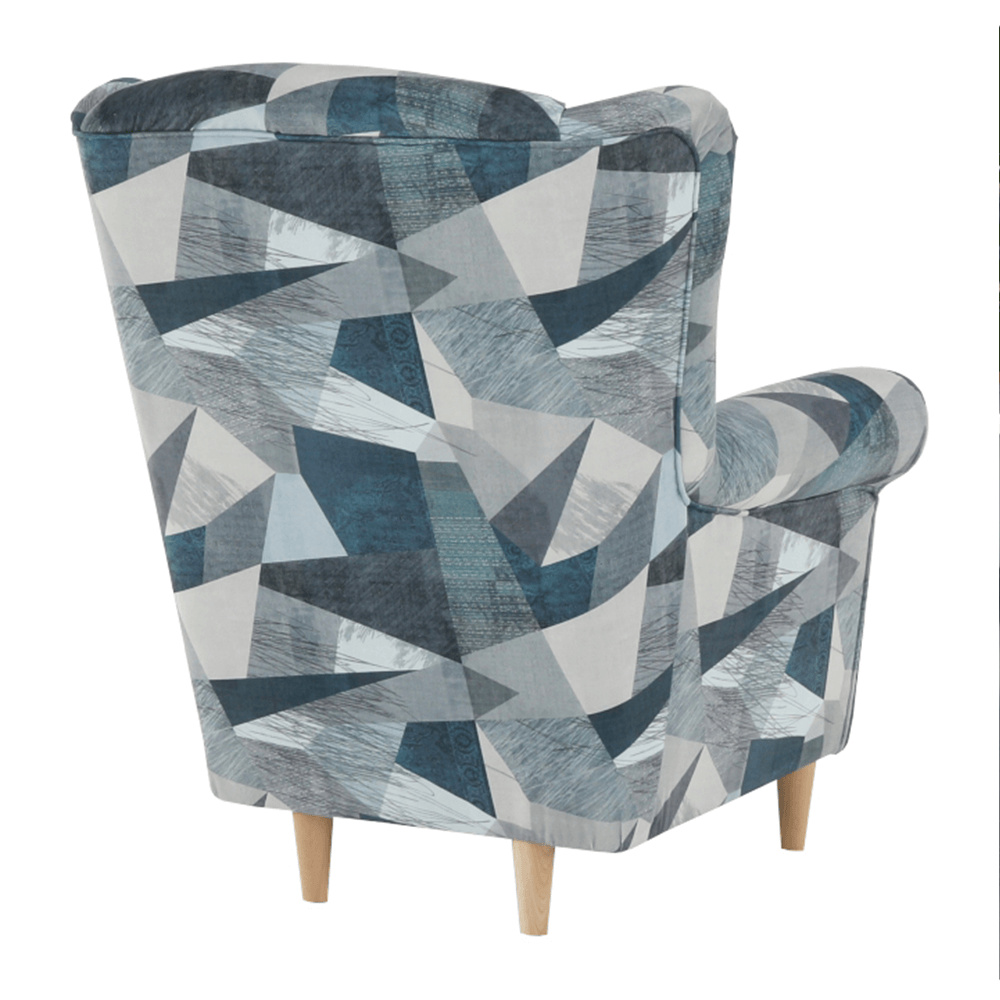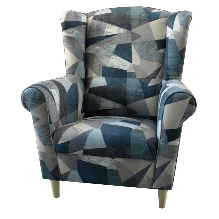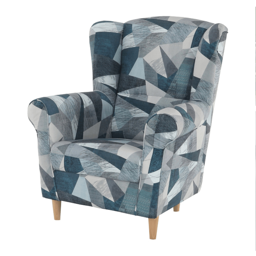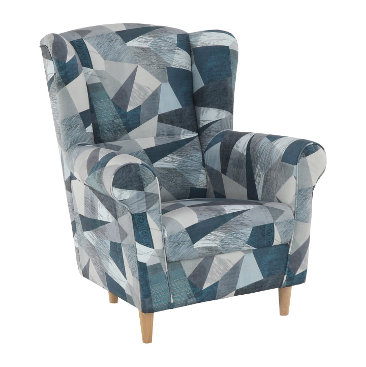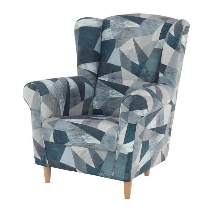 Křeslo-ušák CHARLOT v barevném provedení látky Holm šedomodrý vzor. Oděruodolnost textilie podle testu Martindale: 90 000 oděrek Dřevěné nožičky. Rozměry (ŠxHxV): 86x82x105 cm Výška zádové opěrky: 70 cm Výška područky: 62 cm Nosnost: 120 kg Dodávané v demontu.