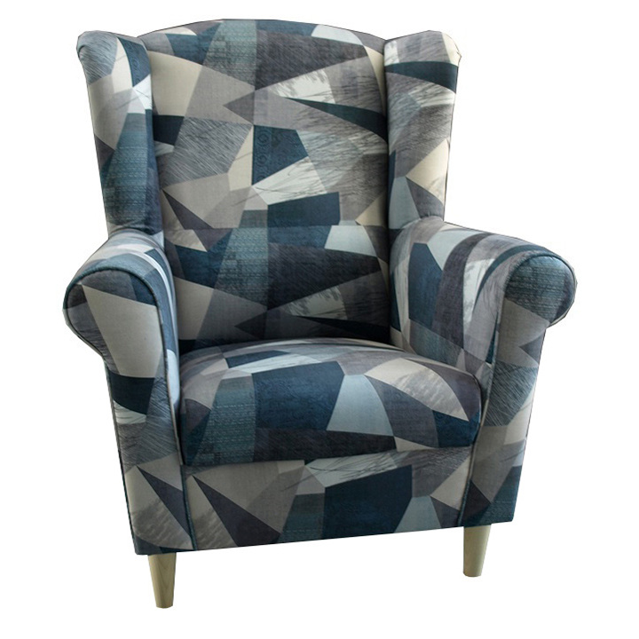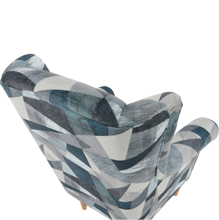 Křeslo ušák, látka šedomodrý vzor, CHARLOT