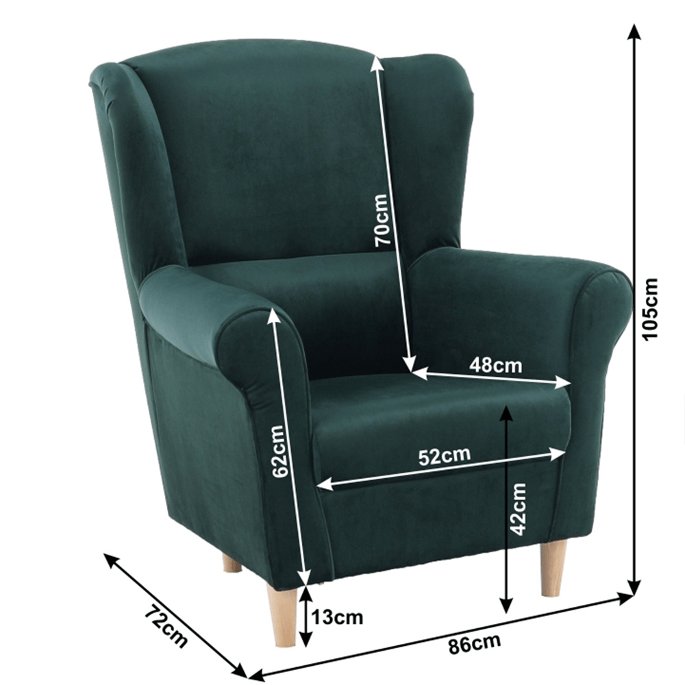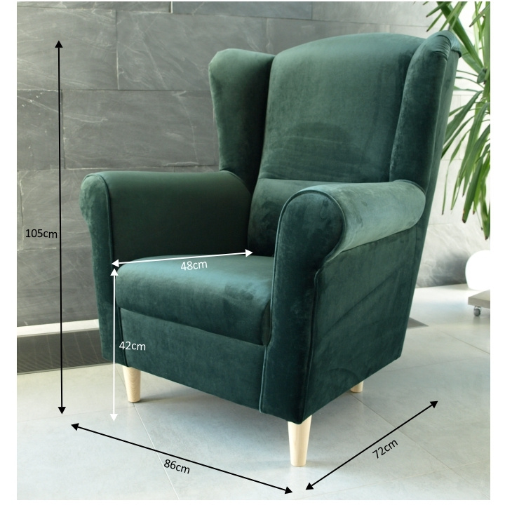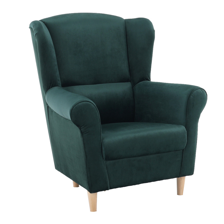 Křeslo-ušák CHARLOTv barevném provedení látky riviera smaragdová 38. Oděruodolnost textilie podle testu Martindale: 90 000 oděrek Dřevěné nožičky. Rozměry (ŠxHxV): 86x82x105 cm Výška zádové opěrky: 70 cm Výška područky: 62 cm Nosnost: 120 kg Dodávané v demontu. Možnost objednání v 6 barevných provedeních látky Alova v ceně 7.450 Kč nebo látky Soro v ceně 8.290 Kč a ve 4 barevných provedeních látky Coral v ceně 7.790 Kč. Při individuální objednávce je třeba zaplatit 20% zálohu z dané částky. Po uhrazení zálohy bude Váš požadavek zadán do výroby. Dodací lhůta 6-8 týdnů.