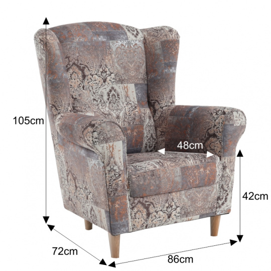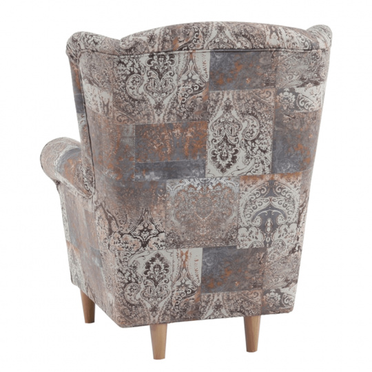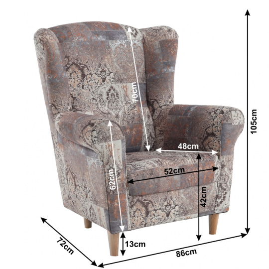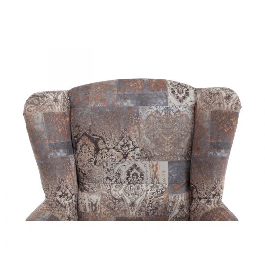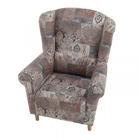 Křeslo ušák, látka vintage hnědá 1026, Charlot