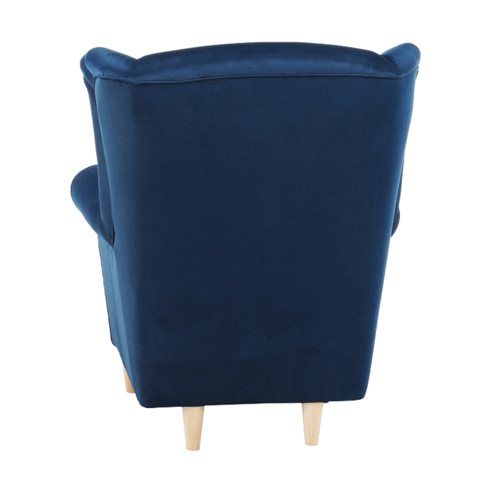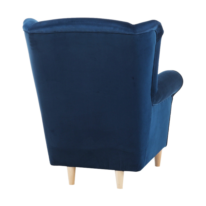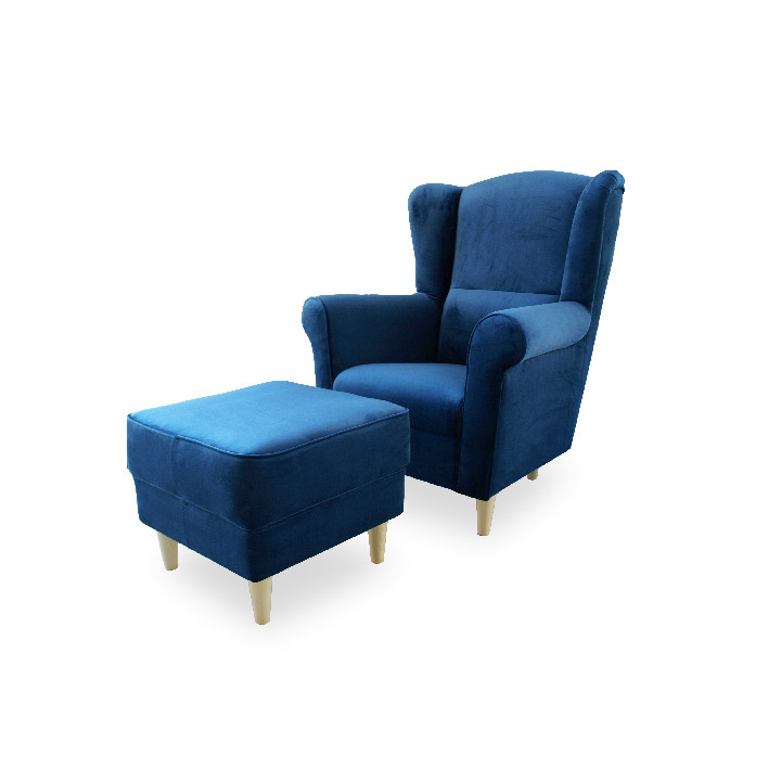 Křeslo ušák, s taburetem, látka modrá, ASTRID