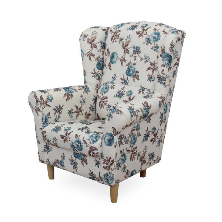 Pohodlné křeslo - ušák s taburetem, provedení: riviera látka modrá- nožičky dřevěné. Oděruodolnost textilie podle testu Martindale: 90 000 oděrek rozměry (ŠxVxH): křeslo - 86x105x82 cm, taburet - 53x42x53 cm, Výška spodního prostoru od podlahy: 13 cm Nosnost křesla: 120 kg Nosnost taburetu: 90 kg Dodávané v demontu. Možnost objedn