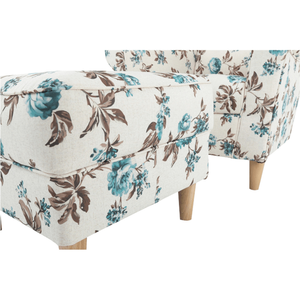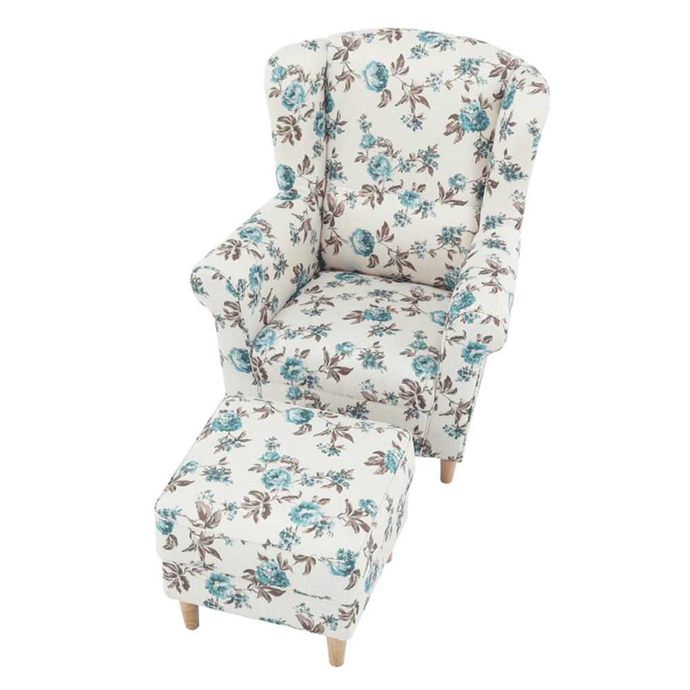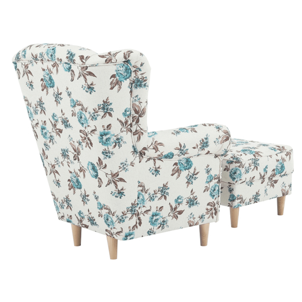 Křeslo ušák s taburetem, látka parchwork Viorica 1, ASTRID