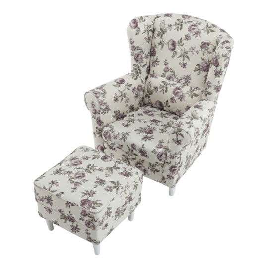 Křeslo ušák s taburetem, látka rose 14, ASTRID
