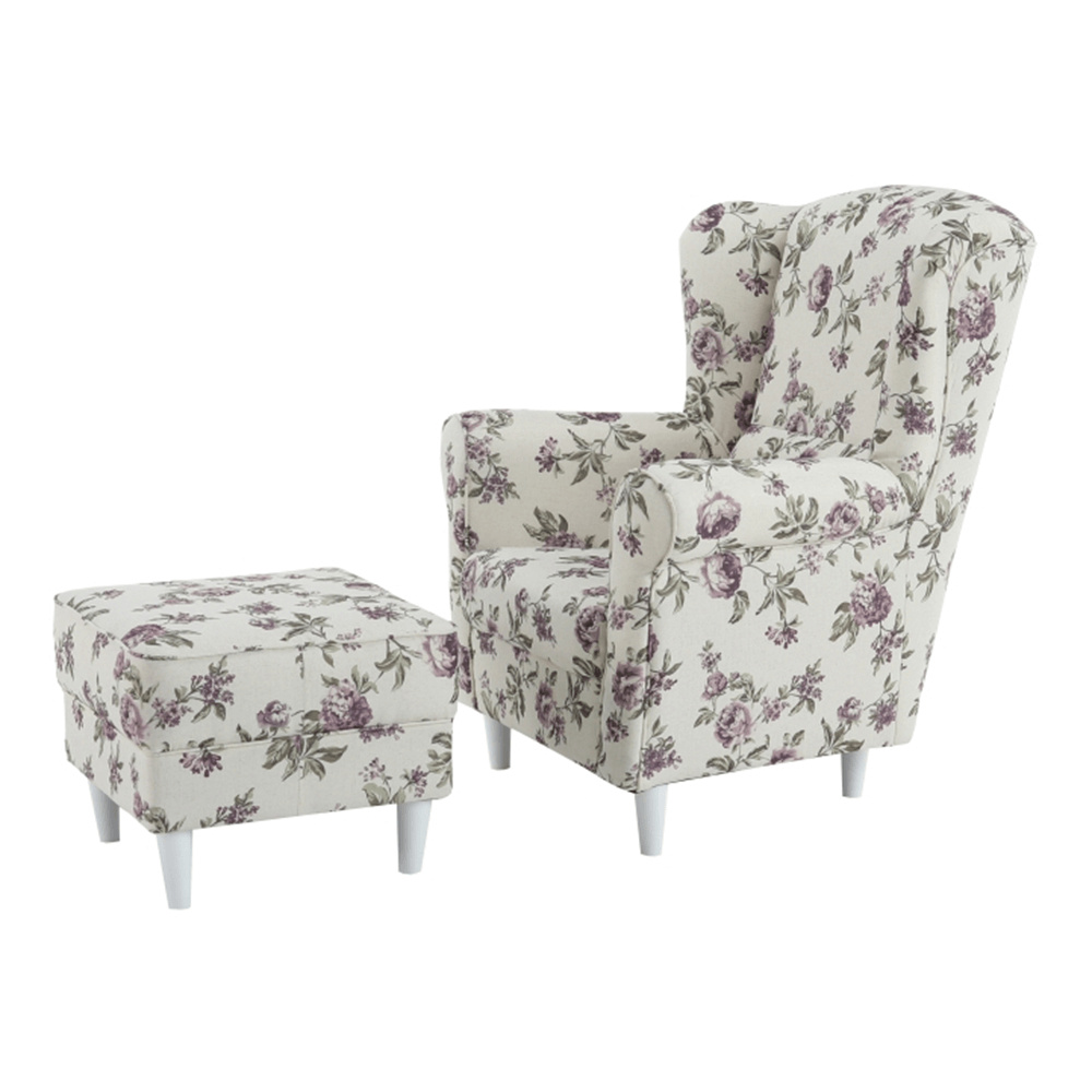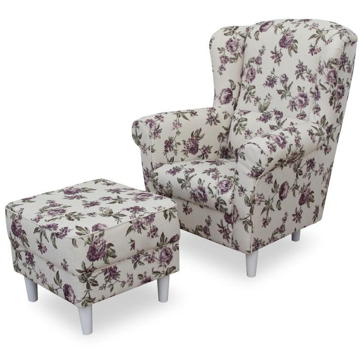 Křeslo ušák s taburetem, látka rose 14, ASTRID