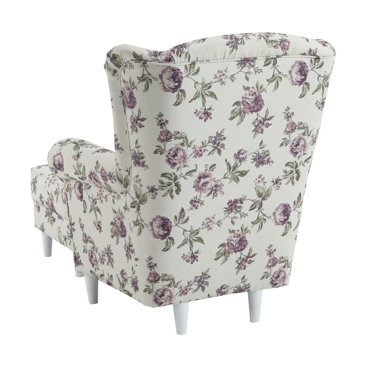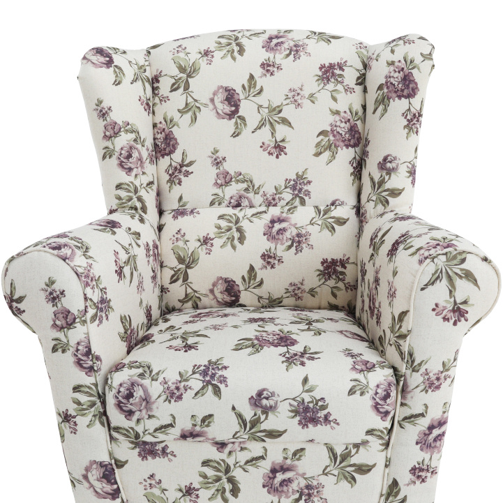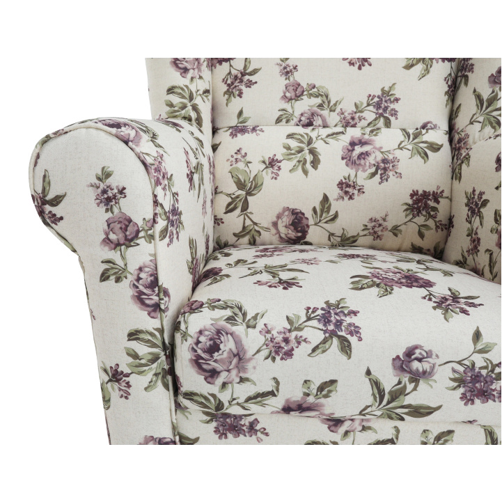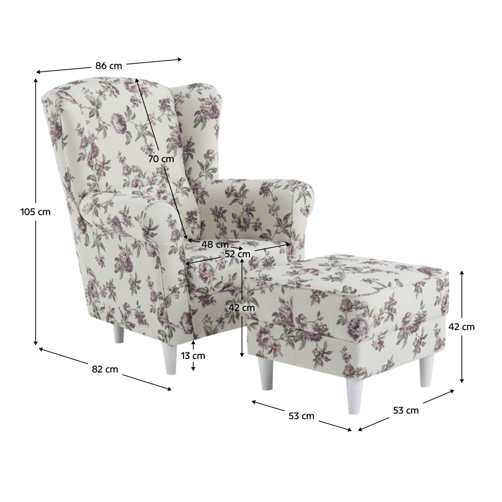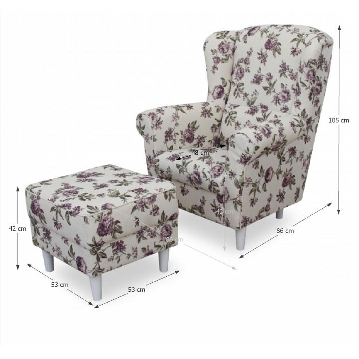 Pohodlné křeslo - ušák s taburetem ASTRID Provedení: látka Rose 14 - nožičky dřevěné v barvě buk Oděruodolnost textilie podle testu Martindale: 85 000 oděrek Rozměry (ŠxHxV): křeslo - 86x82x105 cm Výška sedu: 42 cm Hloubka sedu: 48 cm Taburet - 53x53x42 cm Výška spodního prostoru od podlahy: 13 cm Nosnost křesla: 120 kg Nosnost t