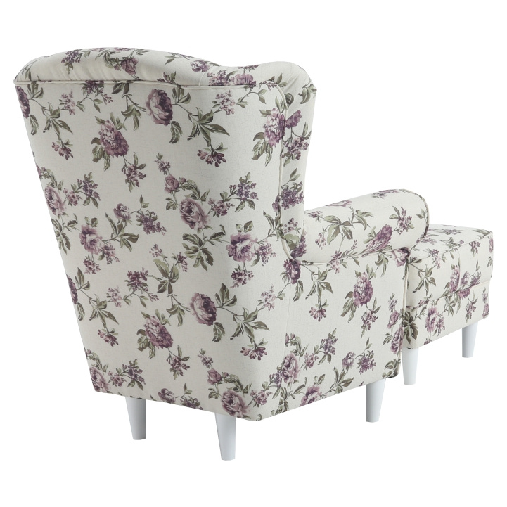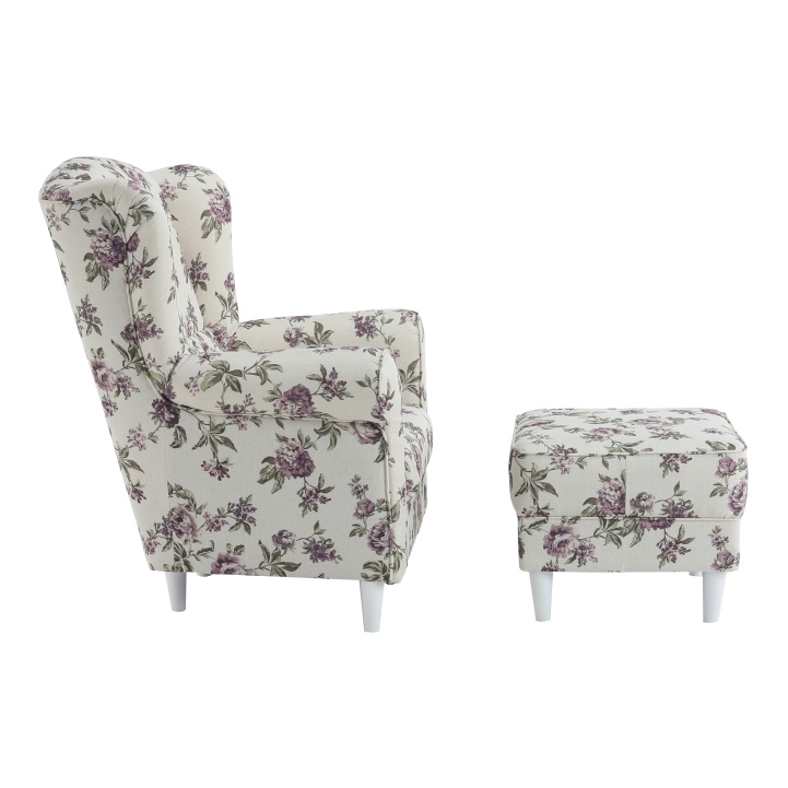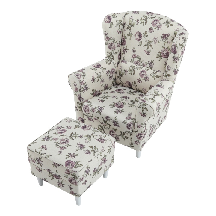 Křeslo ušák s taburetem, látka rose 18, ASTRID
