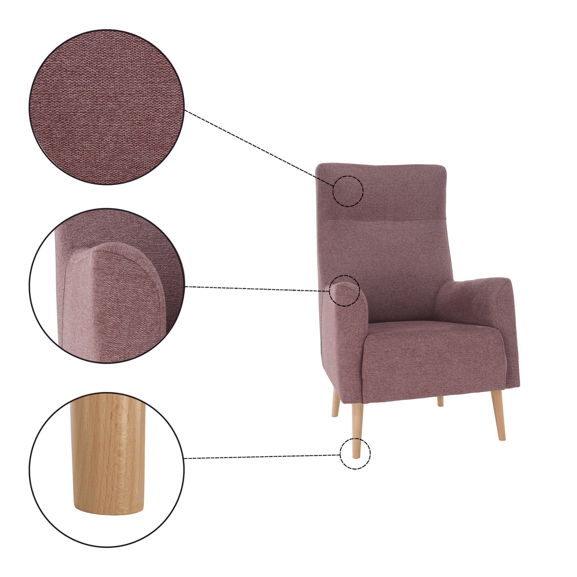 Křeslo ušák, starorůžová/buk, SAMY