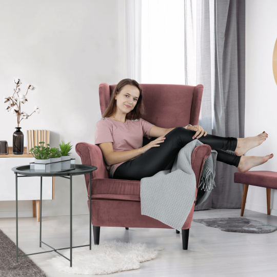 Křeslo ušák, starorůžová/ořech, RUFINO 3 NEW