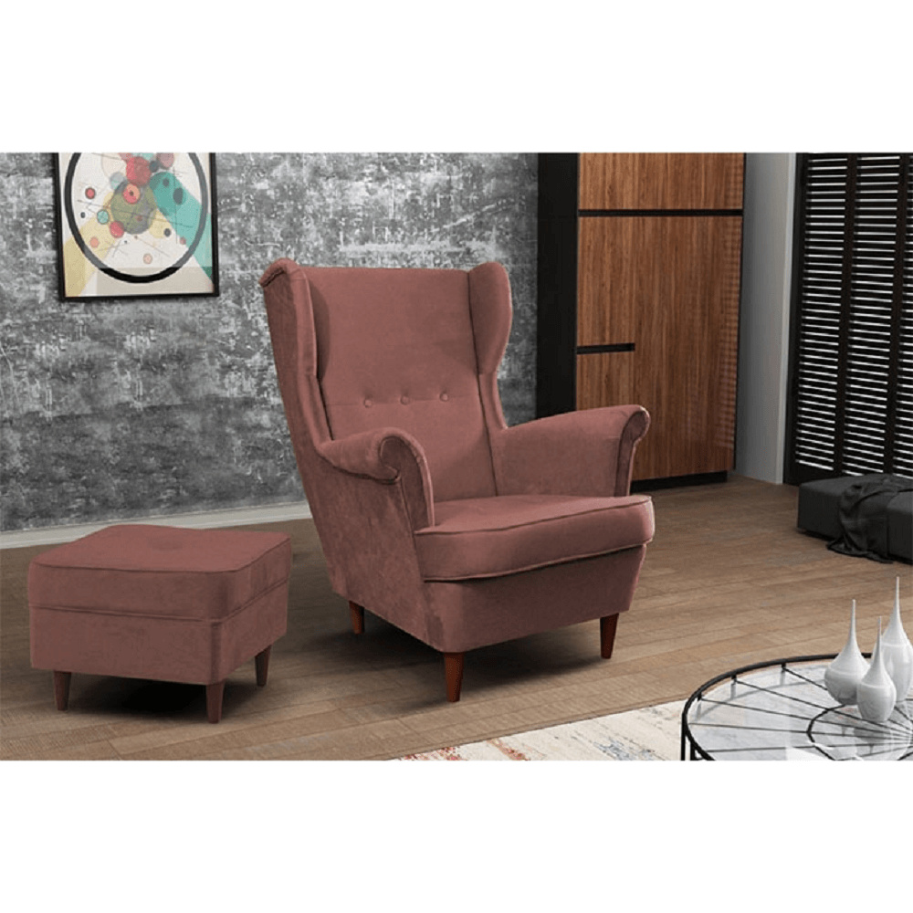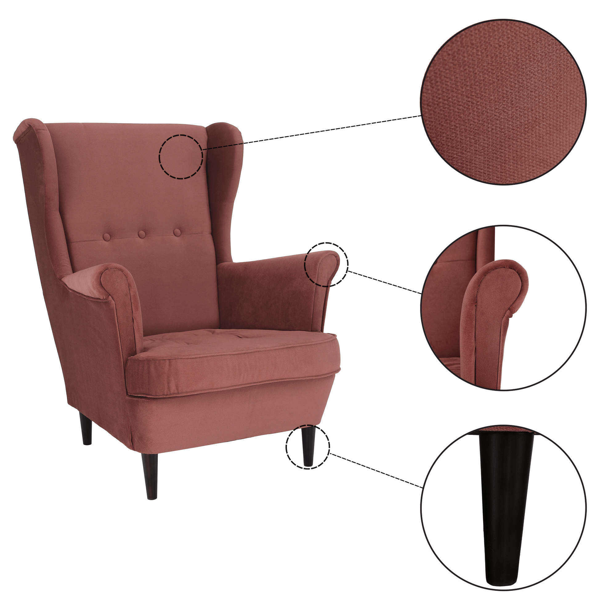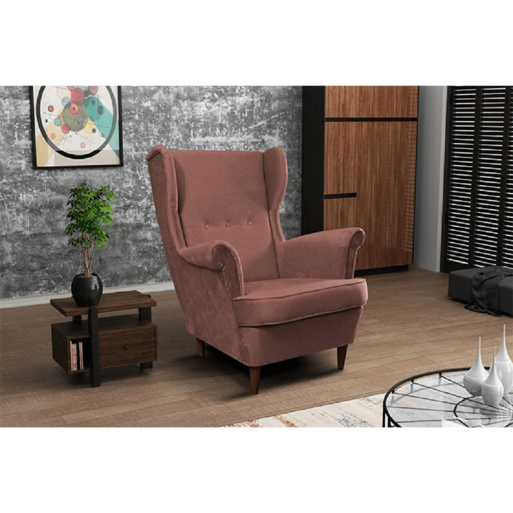 Křeslo ušák, starorůžová/ořech, RUFINO 3 NEW