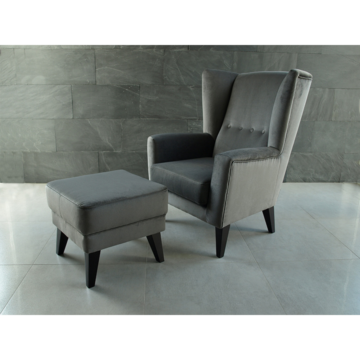 Křeslo-ušák, světle šedá / černá, RODEZA