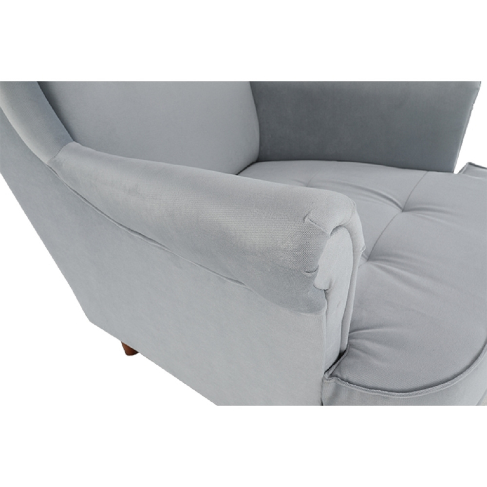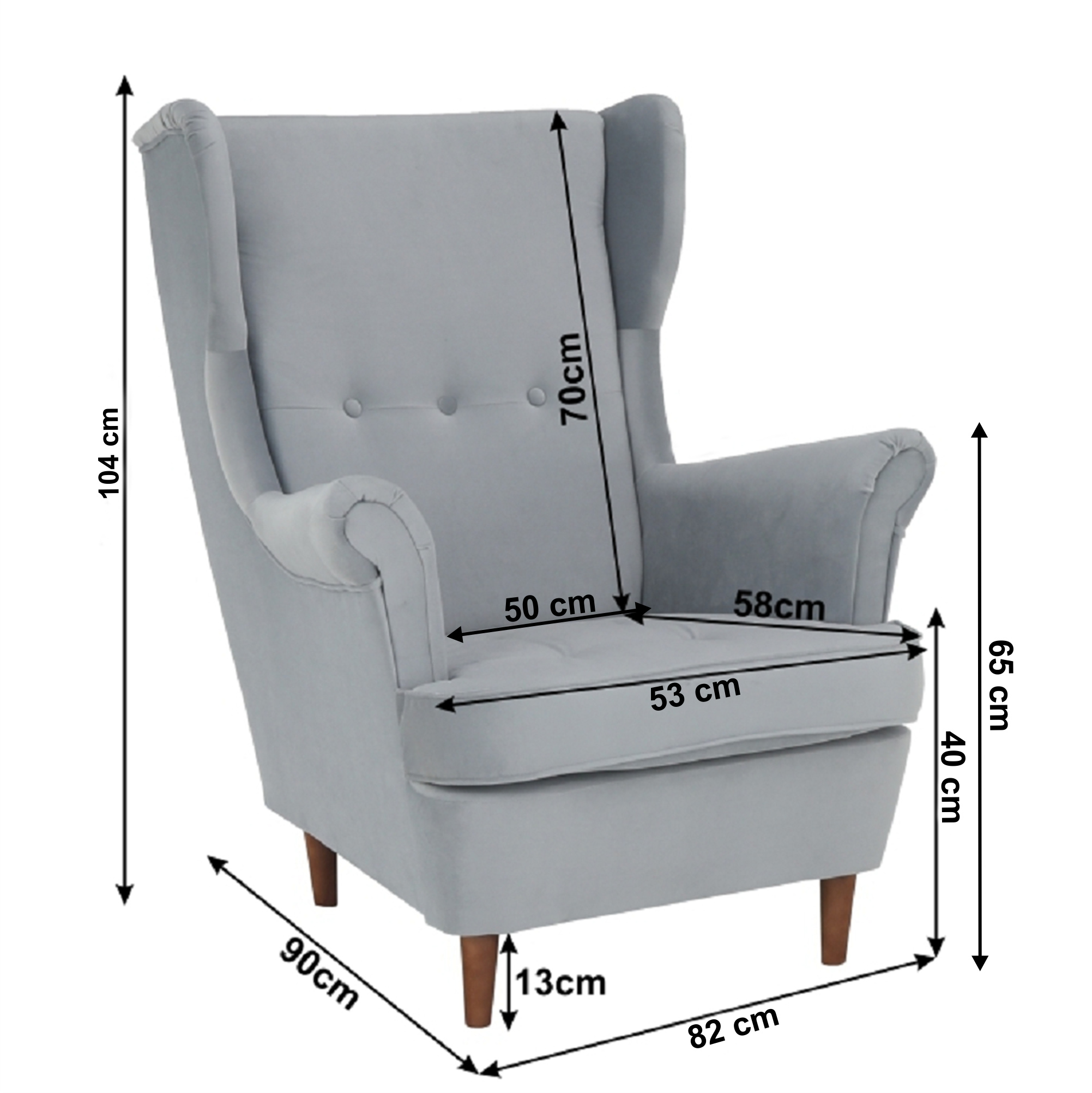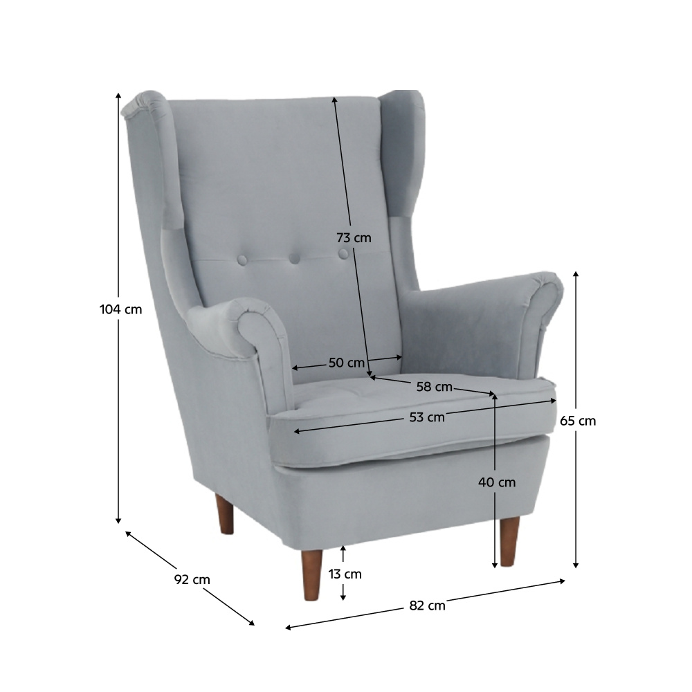 Materiál čalounění: látka Paros Oděruodolnost textilie podle testu Martindale: 50 000 oděrů Barva čalounění: světle šedá 5 Materiál nohy: dřevo Barva nohy: ořech Rozměry křesla (ŠxHxV): 82x92x104 cm Výška sedu: 40 cm Hloubka sedu: 58 cm Výška spodního prostoru od podlahy: 13 cm Šířka sedáku: 53 cm Výška zádové opěrky: 73 cm Výška od země po opěrku: 65 cm Nosnost: 120 kg Dřevěné nožičky Barva nožiček se může lišit Dodáváno v demontu