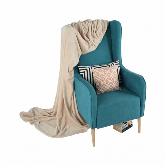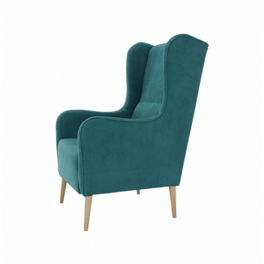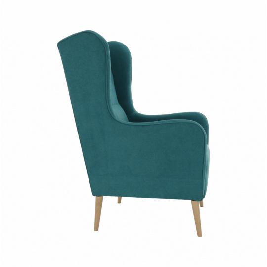 Křeslo ušák, tyrkysová/buk, BREDLY