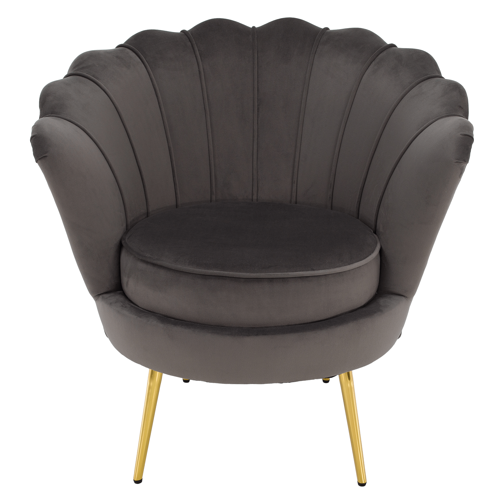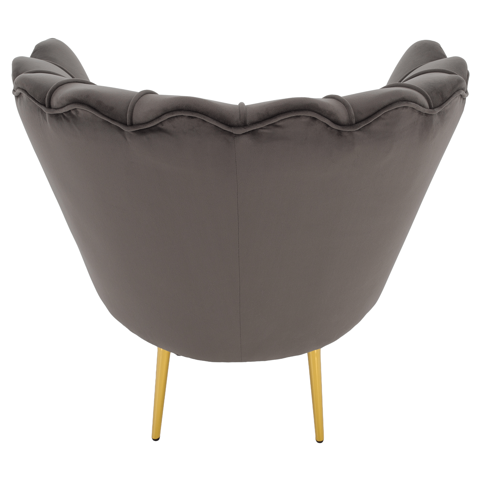 Materiál: látka Velvet/kov Oděruodolnost textilie podle testu Martindale: 80 000 oděrů Barva: šedohnědá/gold chrom zlatý Rozměry (ŠxHxV): 76x68x77 cm Výška sedu: 43 cm Hloubka sedu: 46 cm Šířka sedu: 46 cm Výška zádové opěrky: 34 cm Šířka zádové opěrky: 74 cm Nosnost: 100 kg Hmotnost: 11 kg Výplň: pěna Designové Ve stylu Art-deco Ve tvaru mušle Celočalouněné Dekorativní prošívání Dodáváno v monte