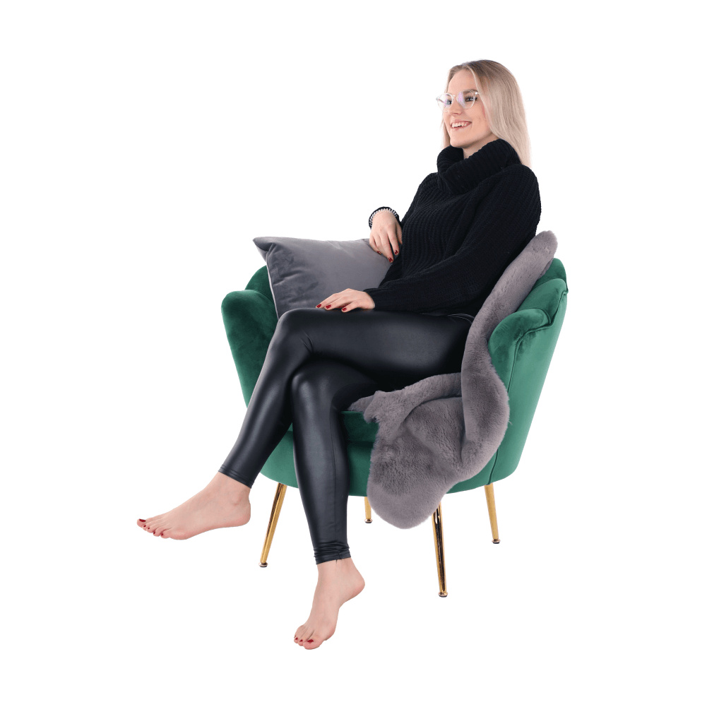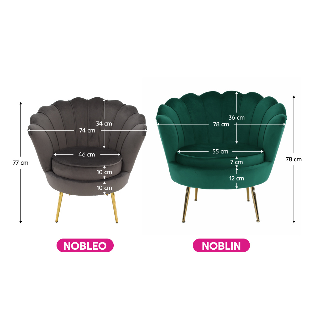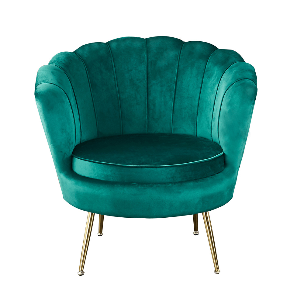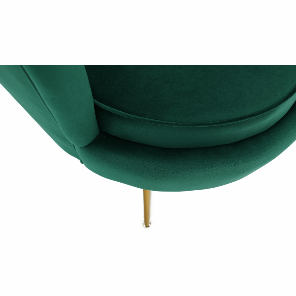 Materiál sedáku: látka Velvet Oděruodolnost textilie podle testu Martindale: 80 000 oděrů Barva: smaragdová Materiál nohy: kov Barva: gold chrom-zlatý Rozměry (ŠxHxV): 76x78x78 cm Výška sedu: 42 cm Hloubka sedu: 56 cm Nosnost: 90 kg Nohy zakončené ohebnými kluzáky pro vyrovnání nerovnosti povrchu Designové Ve stylu Art-deco Ve tvaru mušle Moderně zpracované Dodáváno v demontu