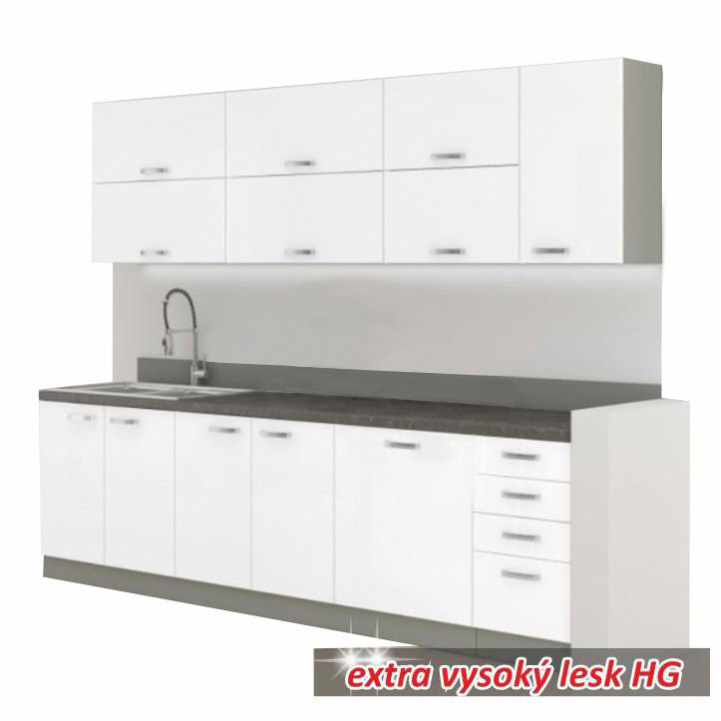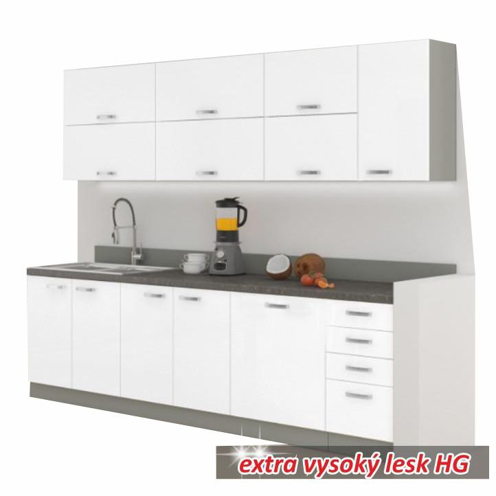 Kuchyňská linka, bílá extra vysoký lesk / šedá, PRADO