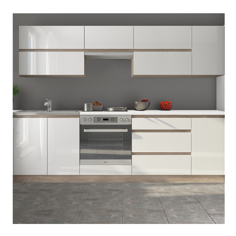 Kuchyňská sestava, dub sonoma/bílá vysoký lesk HG, LINE NEW